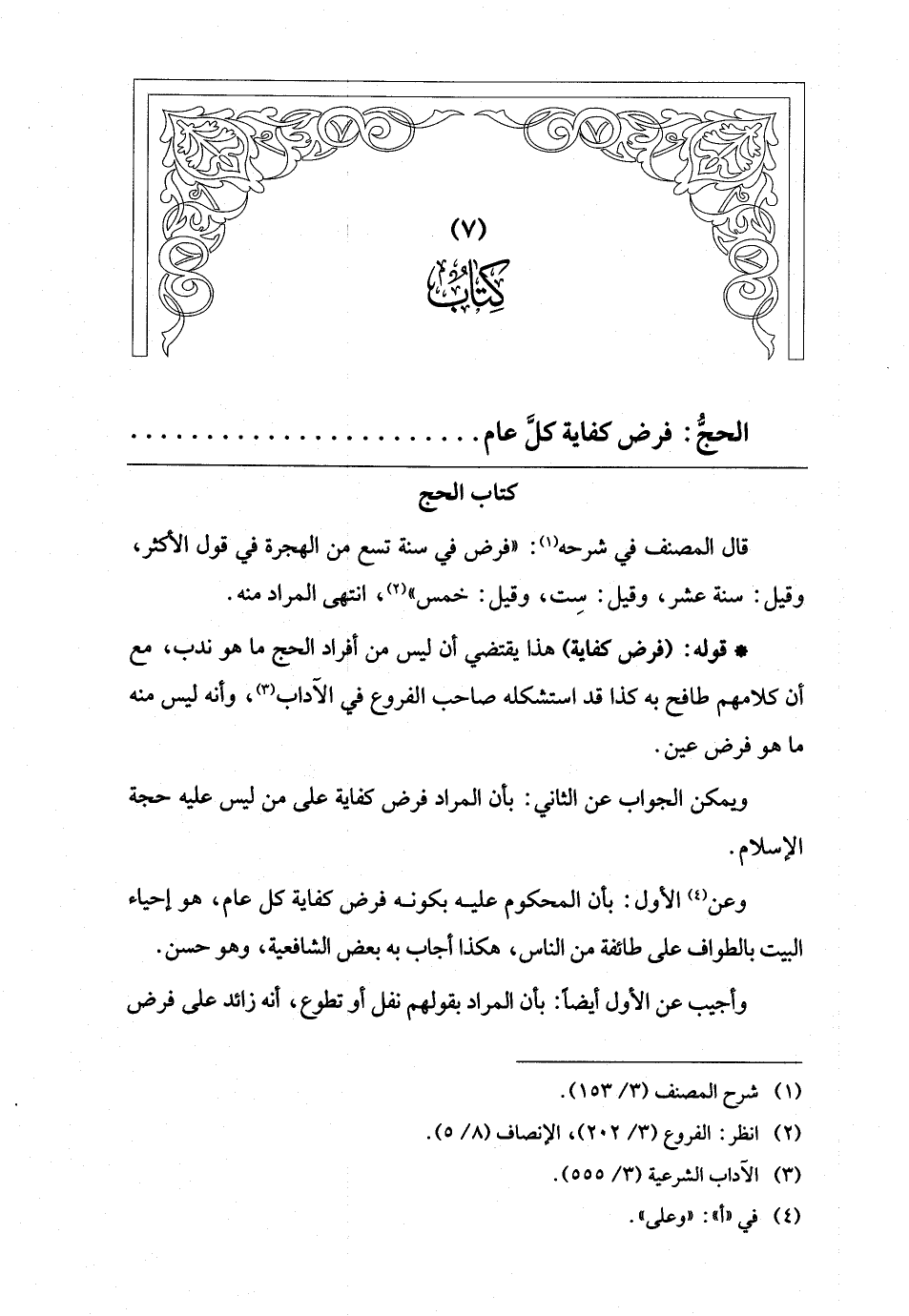 * قوله: (فرض كفاية) هذا يقتضي أن ليس من أفراد الحج ما هو ندب، مع أن كلامهم طافح به كذا قد استشكله صاحب الفروع في الآداب (¬3)، وأنه ليس منه ما هو فرض عين.