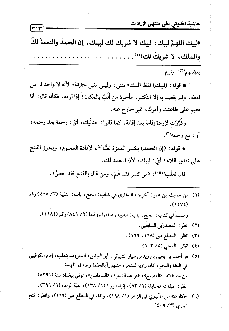 * قوله: (إن الحمد) بكسر الهمزة نصًّا (¬4)، لإفادة العموم، ويجوز الفتح على تقدير اللام؛ أيْ: لبيك؛ لأن الحمد لك.