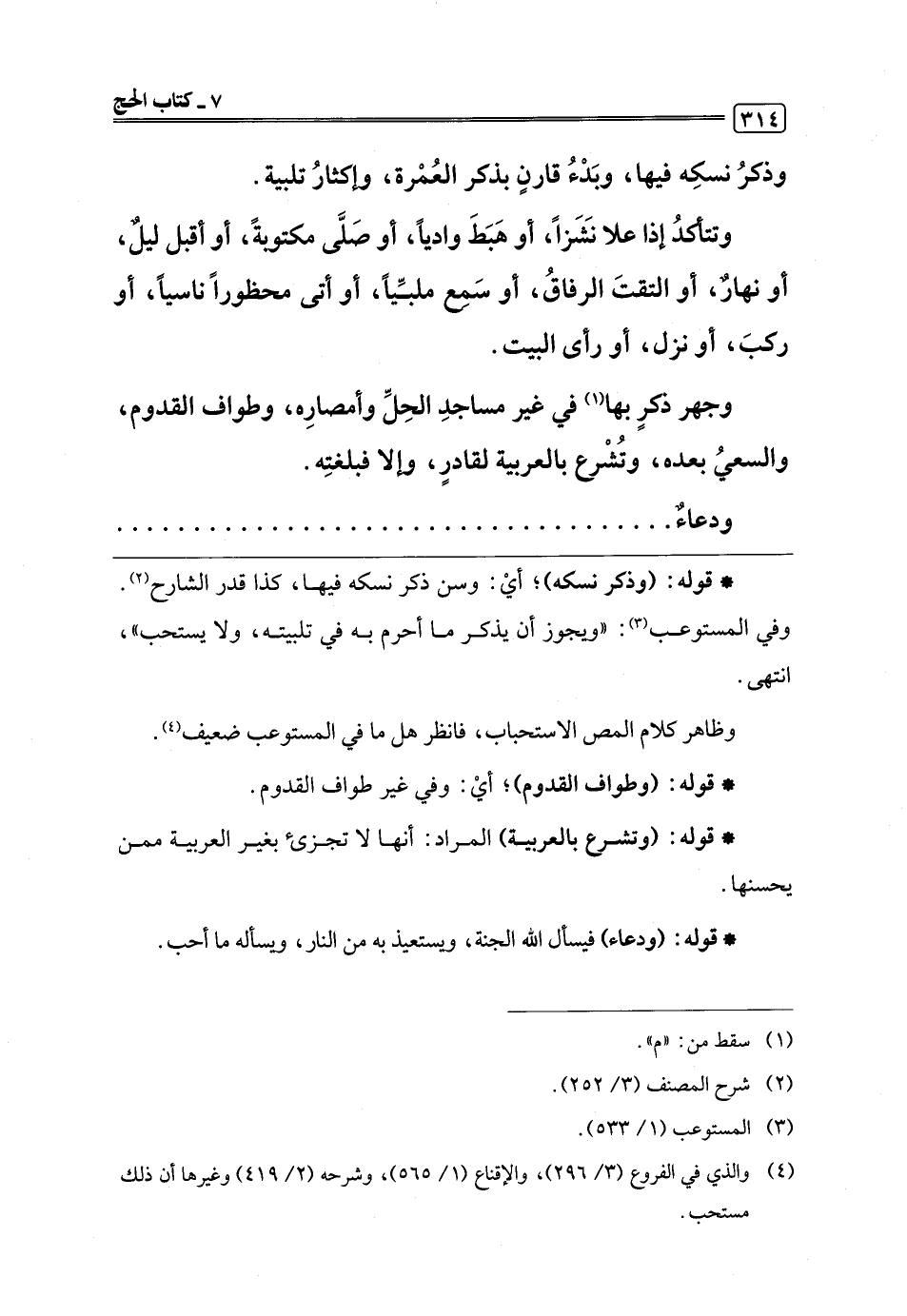 * قوله: (وذكر نسكه)؛ أيْ: وسن ذكر نسكه فيها، كذا قدر الشارح (¬2). وفي المستوعب (¬3): "ويجوز أن يذكر ما أحرم به في تلبيته، ولا يستحب"، انتهى.
