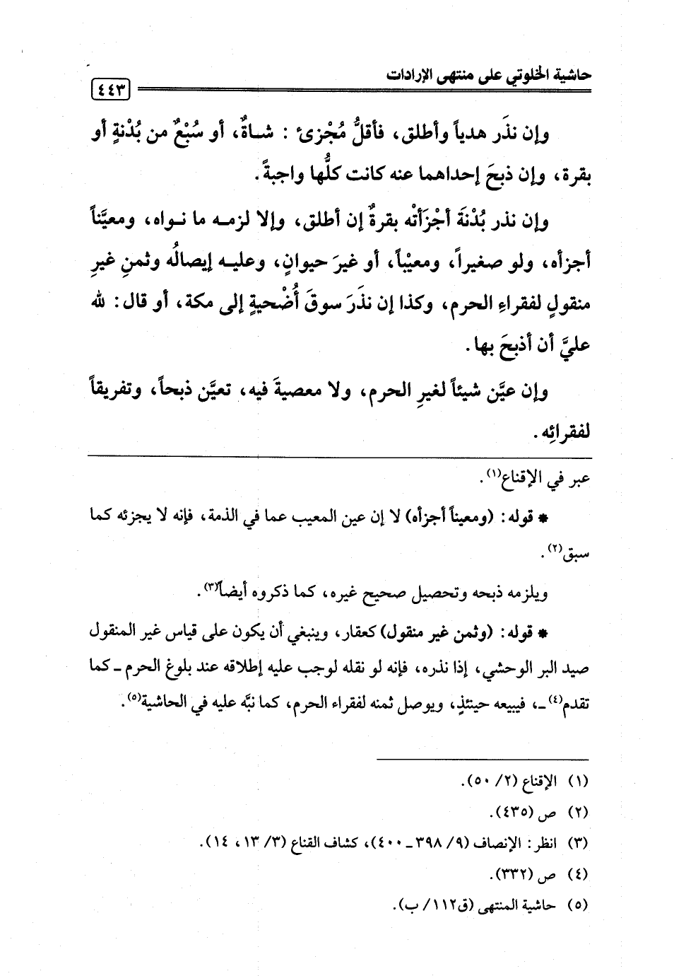 (¬5) حاشية المنتهى (ق 112/ ب).