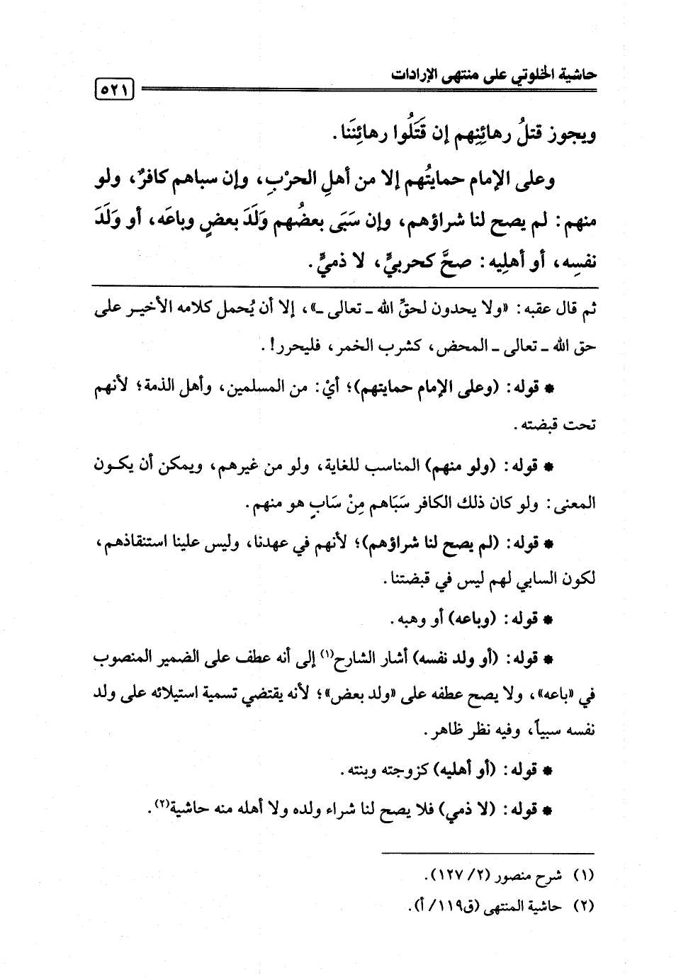 (¬2) حاشية المنتهى (ق 119/ أ).