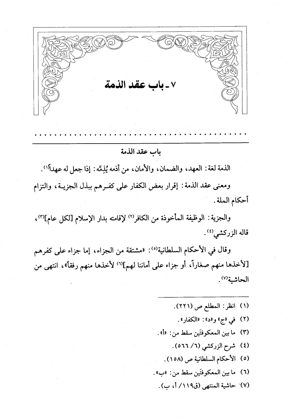 7 - باب عقد الذمة
