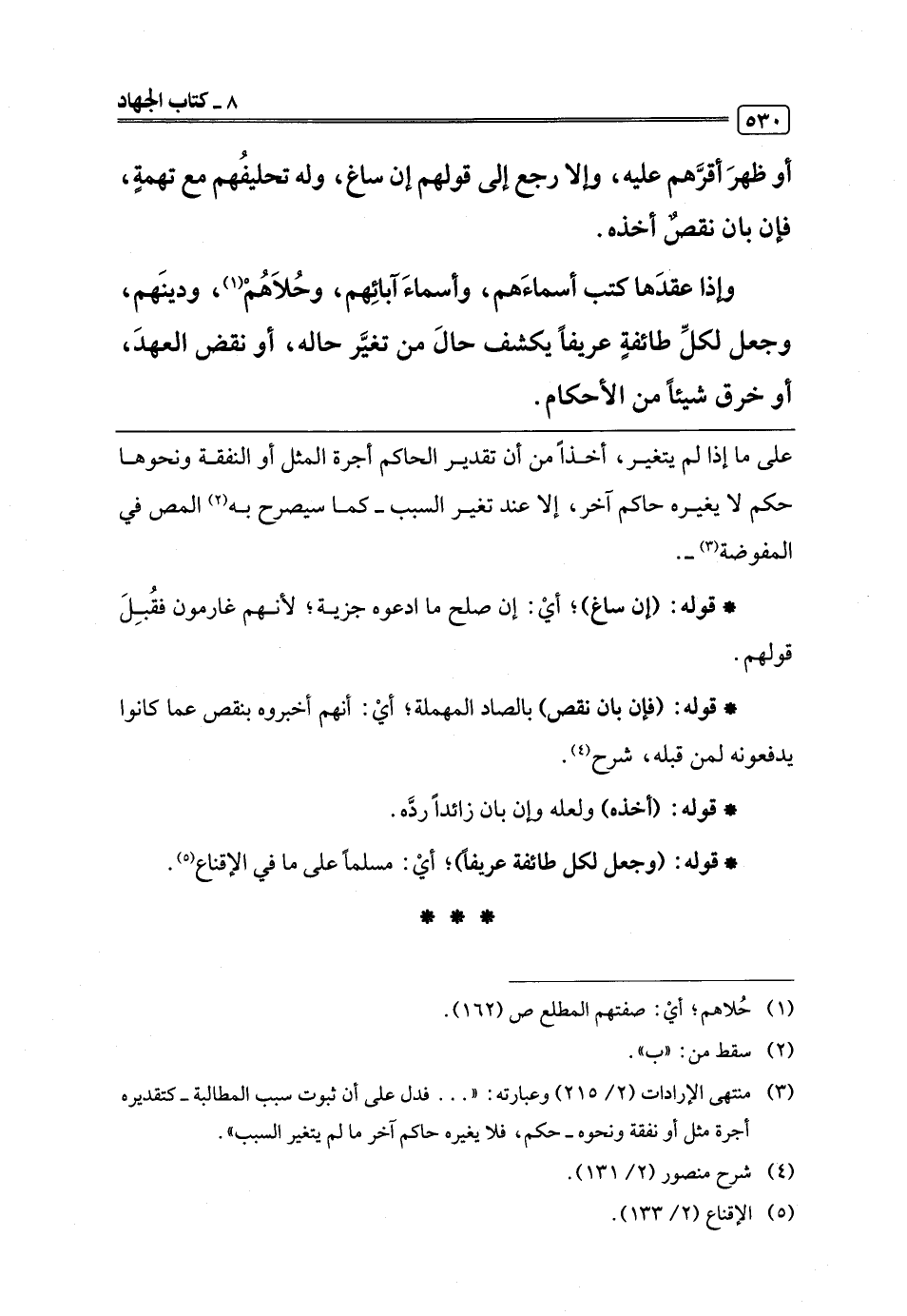 * قوله: (وجعل لكل طائفة عريفًا)؛ أيْ: مسلم على ما في الإقناع (¬5).