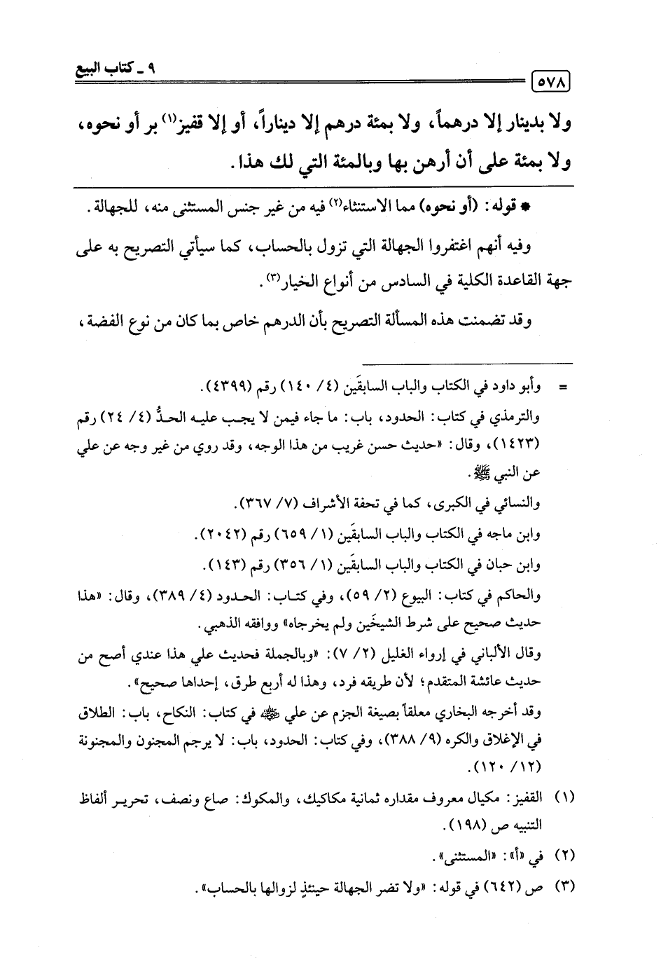 وفيه أنهم اغتفروا الجهالة التي تزول بالحساب، كما سيأتي التصريح به على جهة القاعدة الكلية في السادس من أنواع الخيار (¬3).