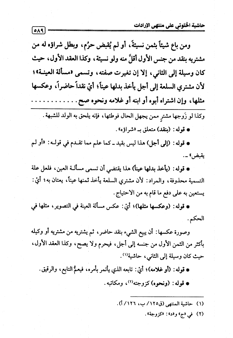 (¬1) حاشية المنتهى (ق 125/ ب، 126/ أ).
