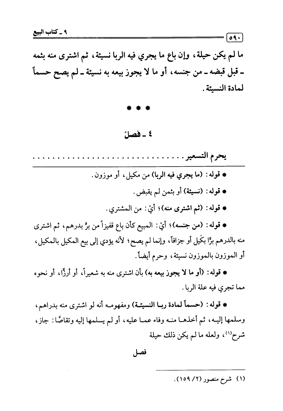 ما لم يكن حيلة، وإن باع ما يجري فيه الرِّبا نسيئة، ثم اشترى منه بثمه -قبل قبضه- من جنسه، أو ما لا يجوز بيعه به نسيئة -لم يصح حسمًا لمادة النسيئة.