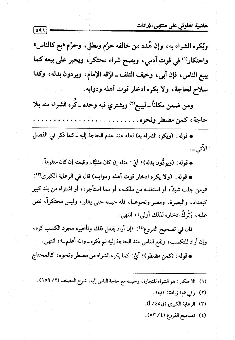 (¬1) الاحتكار: هو الشراء للتجارة، وحبسه مع حاجة الناس إليه. شرح المصنف (2/ 159).