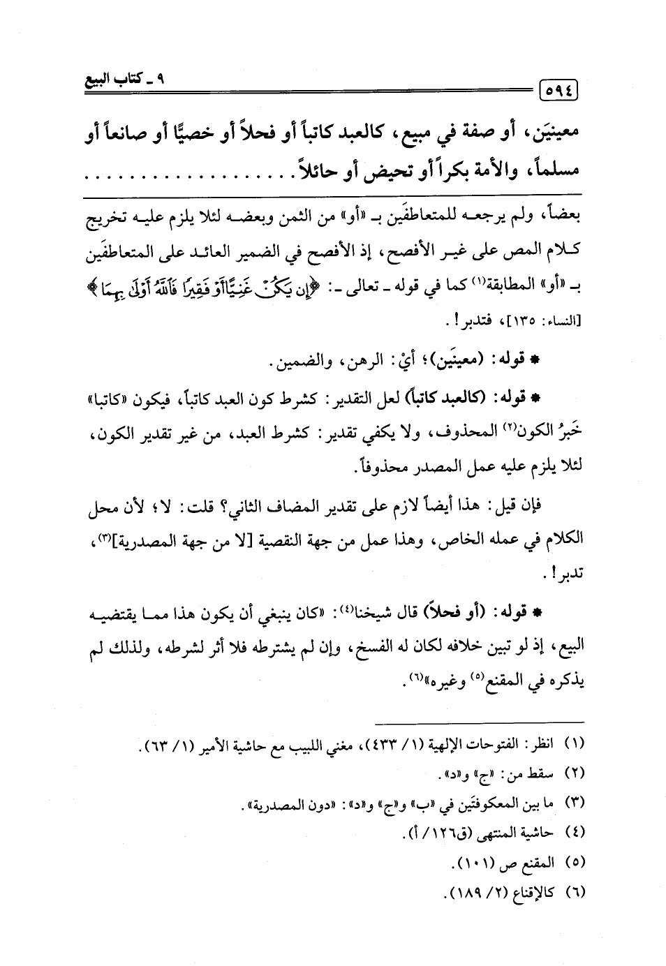 (¬4) حاشية المنتهى (ق 126/ أ).