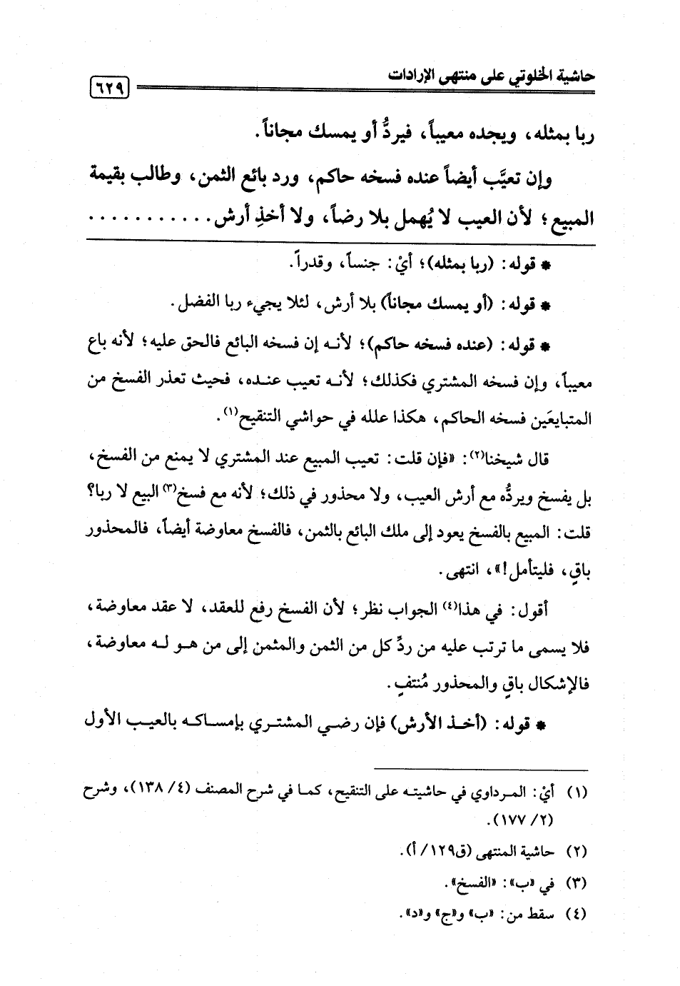 (¬2) حاشية المنتهى (ق 129/ أ).