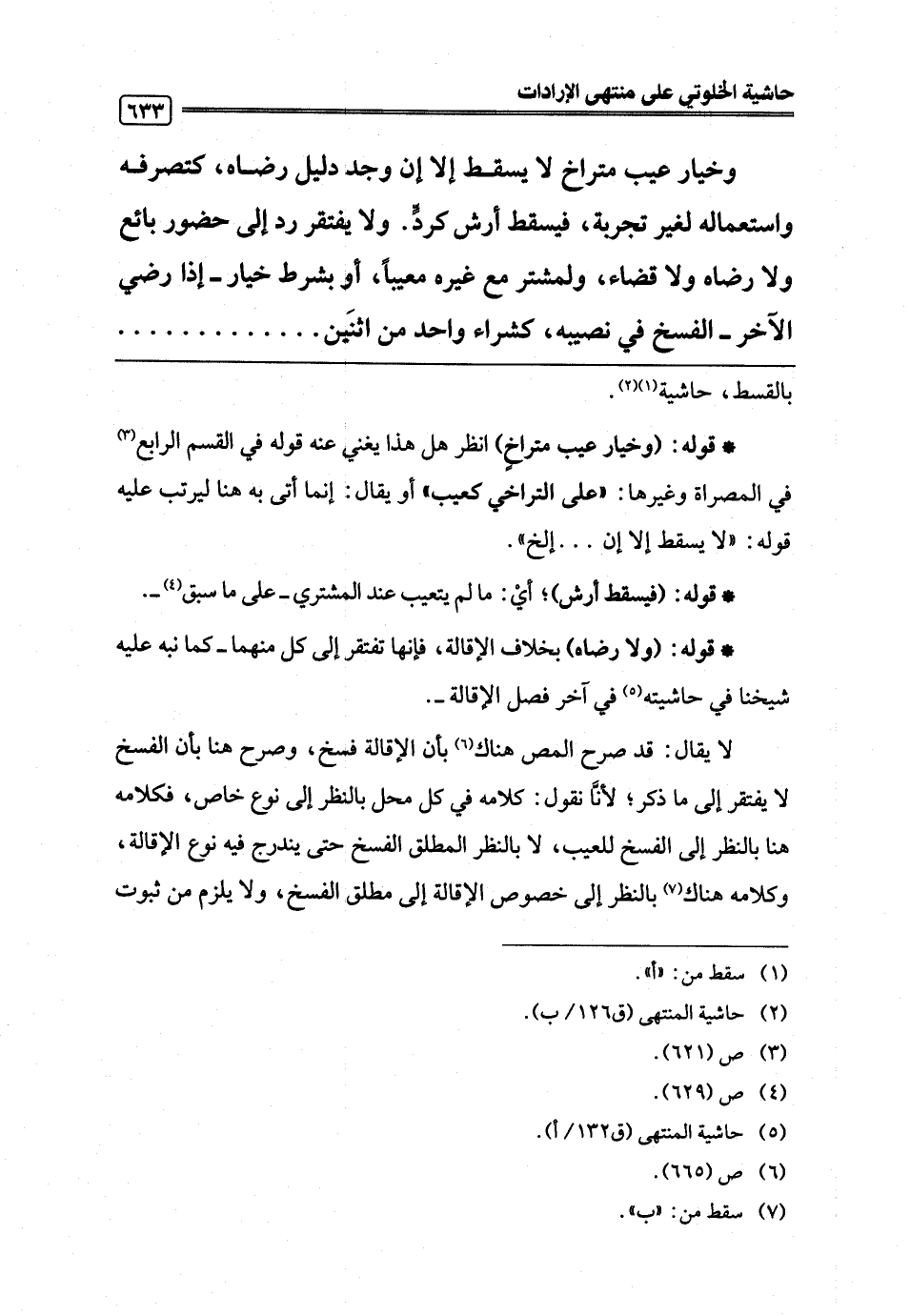 (¬5) حاشية المنتهى (ق 132/ أ).