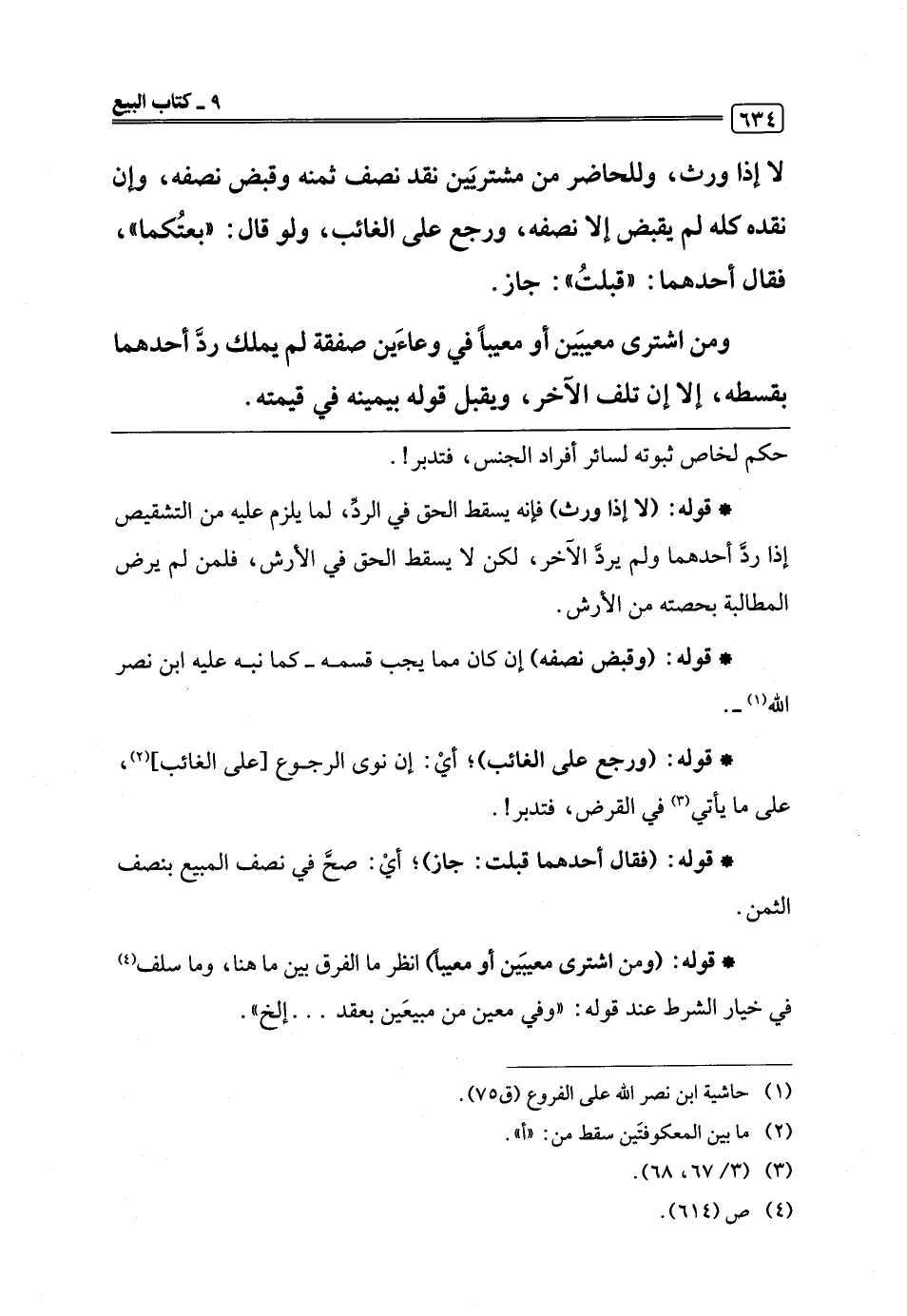 لا إذا ورث، وللحاضر من مشتريَين نقد نصف ثمنه وقبض نصفه، وإن نقده كله لم يقبض إلا نصفه، ورجع على الغائب، ولو قال: "بعتُكما"، فقال أحدهما: "قبلتُ": جاز.