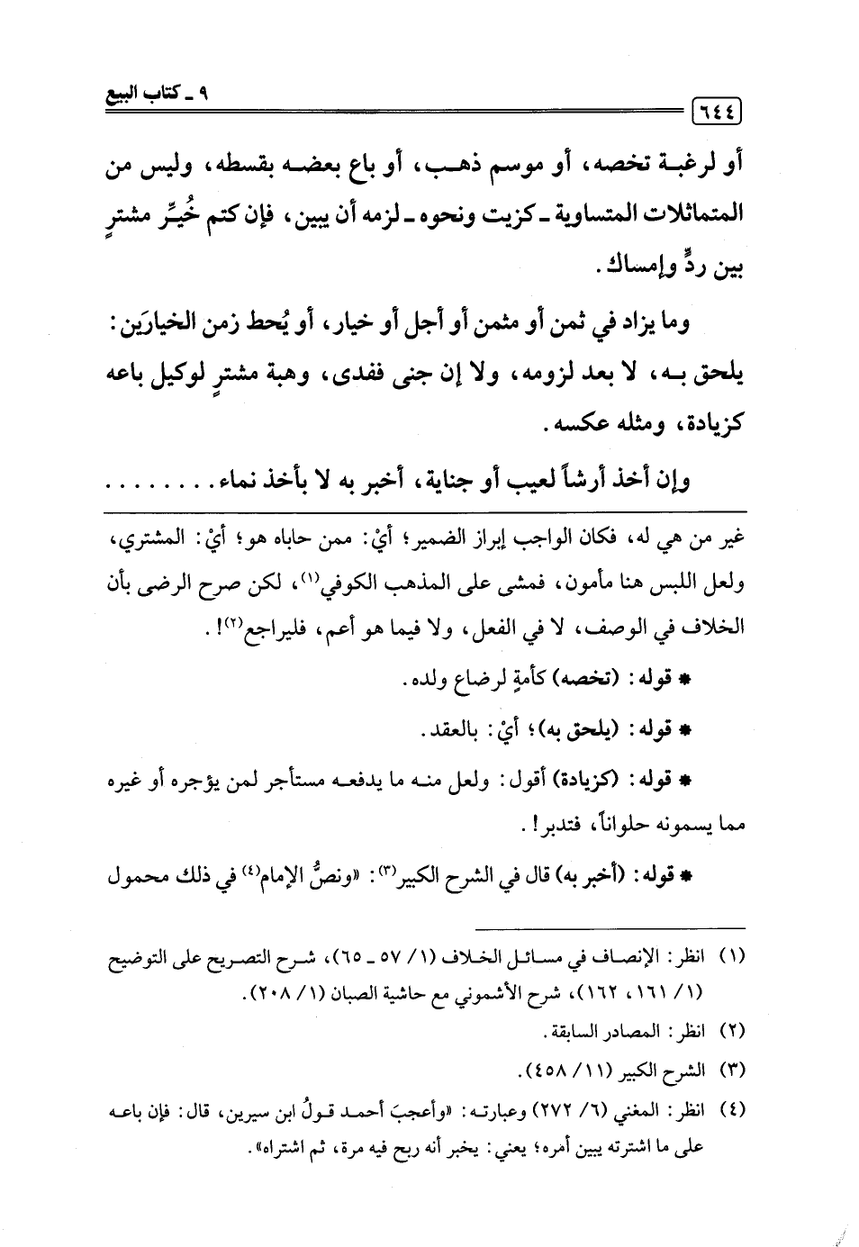 (¬4) انظر: المغني (6/ 272) وعبارته: "وأعجبَ أحمد قولُ ابن سيرين، قال: فإن باعه على ما اشترته يبين أمره؛ يعني: يخبر أنه ربح فيه مرة، ثم اشتراه".