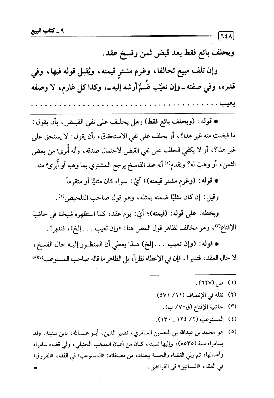 (¬5) هو محمد بن عبد اللَّه بن الحسين السامري، نصير الدين، أبو عبد اللَّه، بابن سنينة. ولد بسامراء سنة (535)، وإليها نسبته، كان من أعيان المذهب الحنبلي، ولي قضاء سامراء وأعمالها، ثم ولي القضاء والحسبة ببغداد، من مصنفاته: "المستوعب" في الفقه، "الفروق" في الفقه، "البساتين" في الفرائض. =