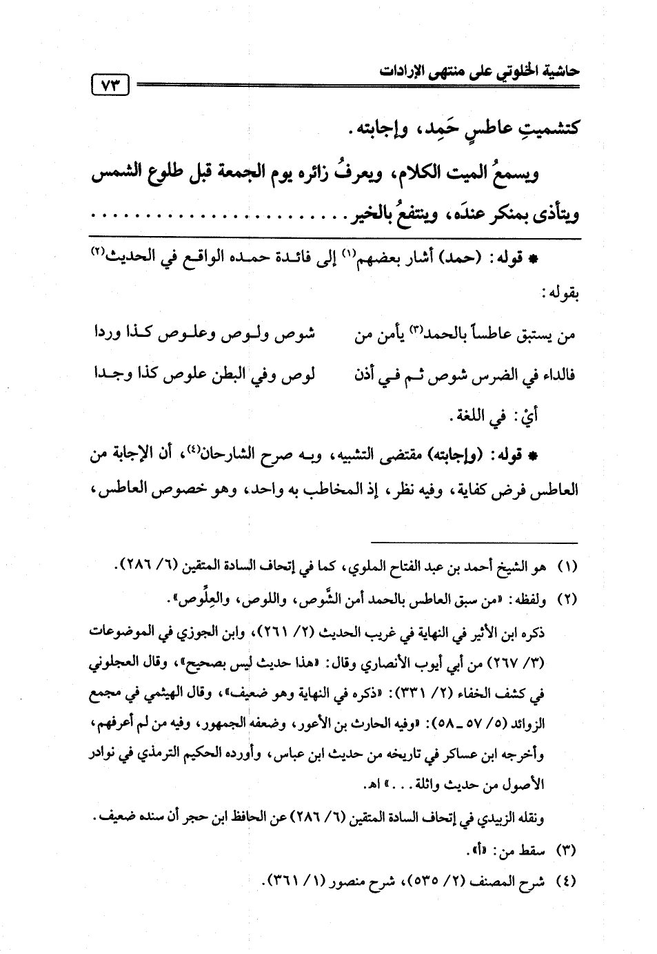 من يستبق عاطسًا بالحمد (¬3) يأمن من ... شوص ولوص وعلوص كذا وردا