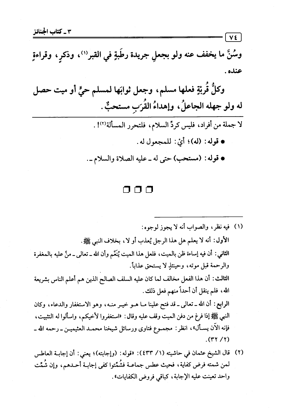 (¬2) قال الشيخ عثمان في حاشيته (1/ 433): "قوله: (وإجابته)؛ يعني: أن إجابة العاطس لمن شمته فرض كفاية، فحيث عطس جماعة فشُمِّتوا كفى إجابة أحدهم، وإن شُمِّت واحد تعينت عليه الإجابة، كباقي فروض الكفايات".