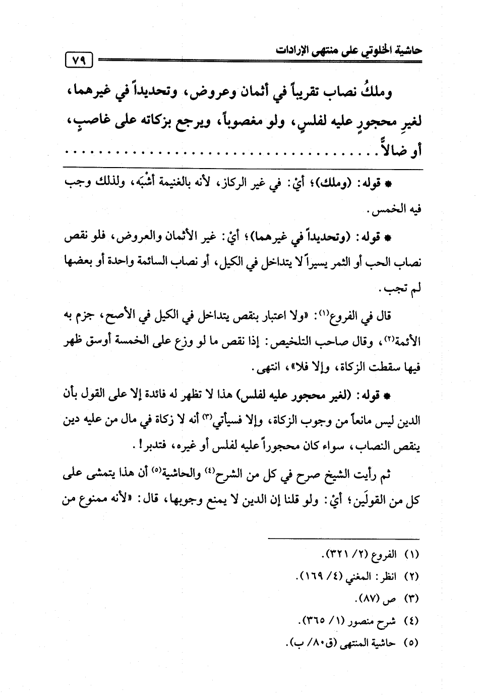 (¬5) حاشية المنتهى (ق 80/ ب).