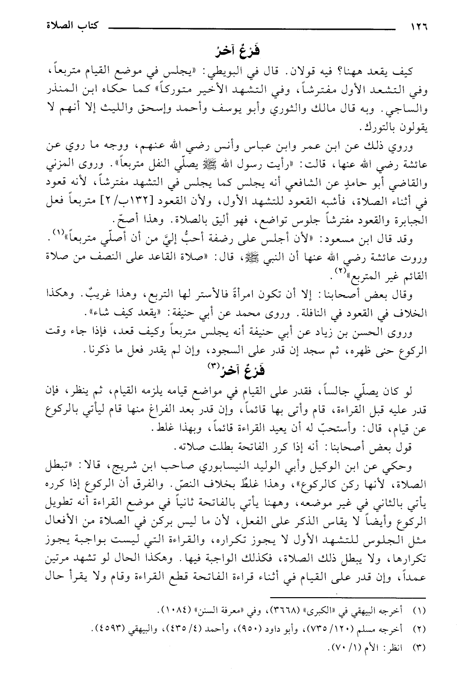 وقد قال ابن مسعود: "لأن أجلس على رضفة أحب إلي من أن أصلي متربعاً". وروت عائشة رضي الله عنها أن النبي - صلى الله عليه وسلم -، قال: "صلاة القاعد على النصف من صلاة القائم غير المتربع".