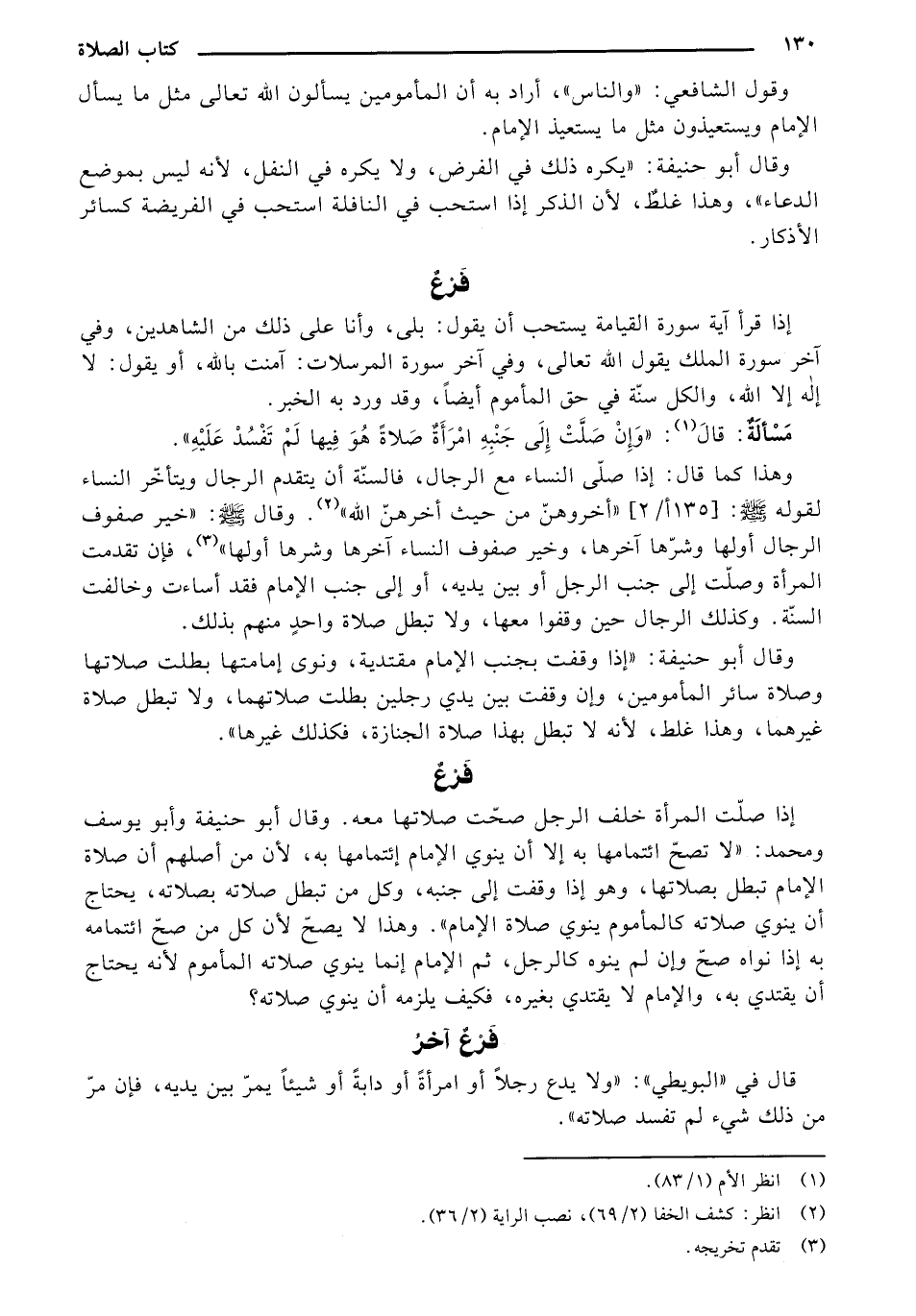وهذا كما قال: إذا صلى النساء مع الرجال، فالسنة أن يتقدم الرجال ويتأخر النساء لقوله - صلى الله عليه وسلم -: [135 أ / 2] "أخروهن من حيث أخرهن الله". وقال - صلى الله عليه وسلم -: "خير صفوف الرجال أولها وشرها آخرها، وخير صفوف النساء آخرها وشرها أولها"، فإن تقدمت المرأة وصلت إلى جنب الرجل أو بين يديه، أو إلى جنب الإمام فقد أسا، ت وخالفت السنة. وكذلك الرجال حين وقفوا معها، ولا تبطل صلاة واحدٍ منهم بذلك.
