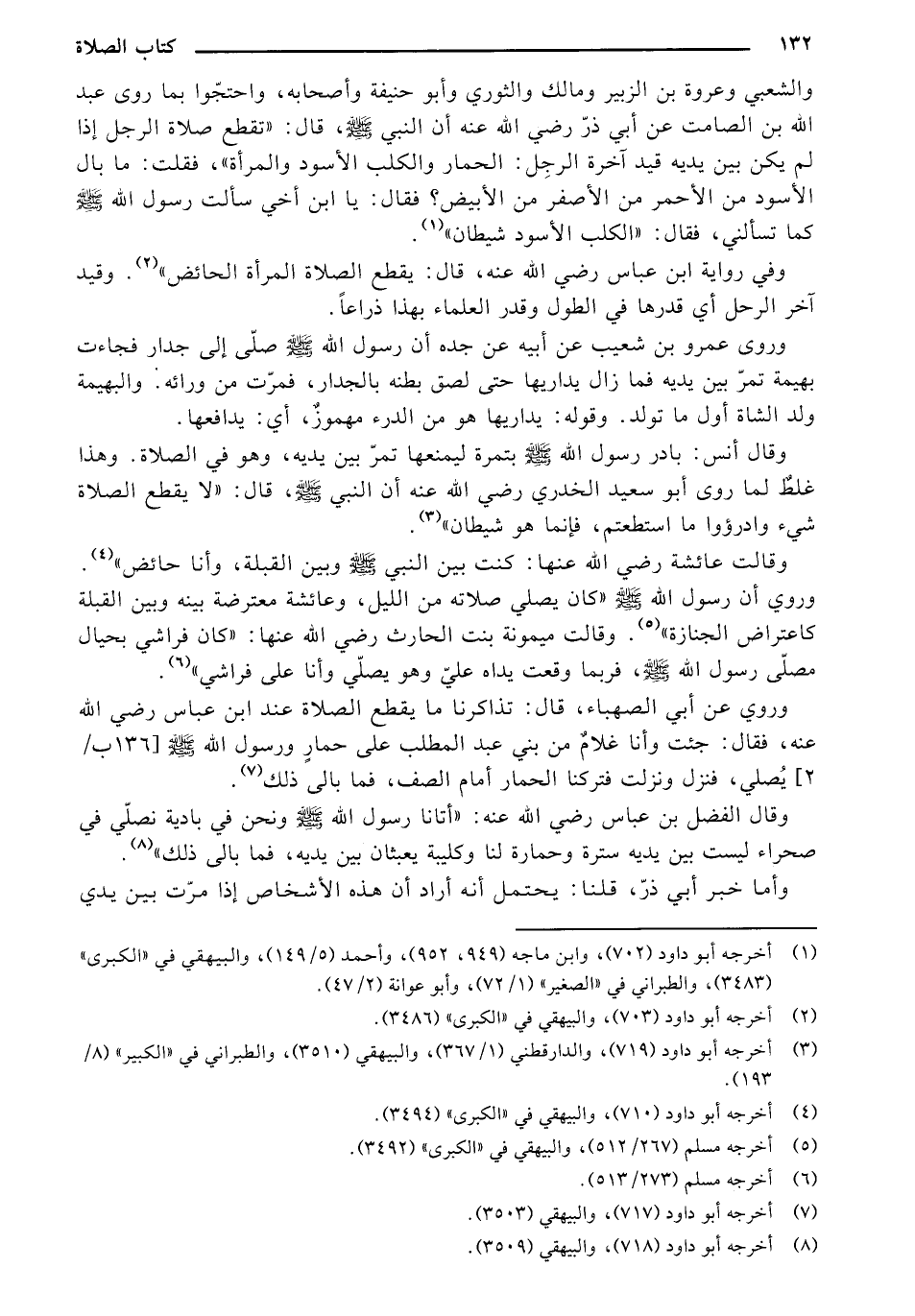 وروي عن أبي الصهباء، قال: تذاكرنا ما يقطع الصلاة عند ابن عباس رضي الله عنه، فقال: جثت وأنا غلام من بني عبد المطلب على حمار ورسول الله - صلى الله عليه وسلم -[136 ب / 2] يصلي، فنزل ونزلت فتركنا الحمار أمام الصف، فما بالى ذلك.