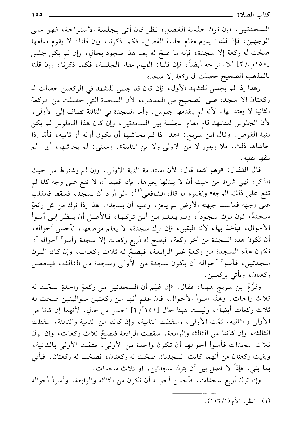قال القفال: "وهو كما قال: لأن استدامة النية الأولى، وان لم يشترط من حيث الذكر، فهي شرط من حيث أن لا يبدلها بغيرها، فإذا قصد أن لا تقع على وجه كذا لم تقع على ذلك الوجه" ونظيره ما قال الشافعي: "لو أراد أن يسجد، فسقط فانقلب على وجهه فماست جبهته الأرض لم يجز، وعليه أن يسجد". هذا إذا ترك من كل ركعة سجدة، فإن ترك سجوداً، ولم يعلم من أين تركها، فالأصل أن ينظر إلى أسوأ الأحوال، فيأخذ بها، لأنه اليقين، فإن ترك سجدة، لا يعلم موضعها، فأحسن أحواله، أن تكون هذه السجدة من آخر ركعة، فيصح له أربع ركعات إلا سجدة وأسوأ أحواله أن تكون هذه السجدة من ركعة غير الرابعة، فيصح له ثلاث ركعات، وإن كان الترك سجدتين، فأسوأ أحواله أن يكون سجدة من الأولى وسجدة من الثالثة، فيحصل ركعتان، ويأتي بركعتين.