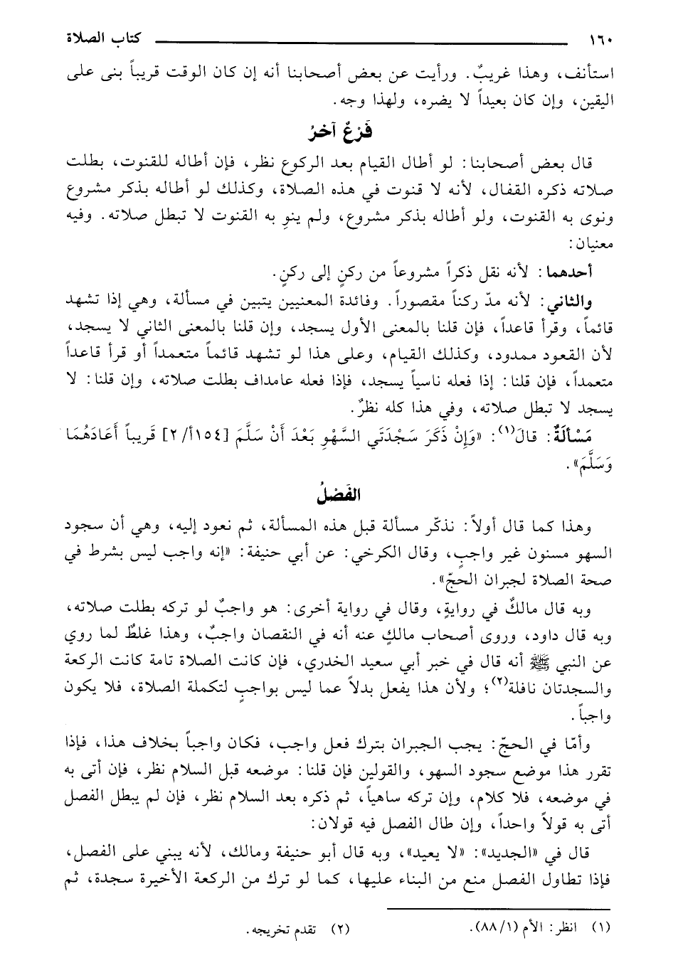 وهذا كما قال أولاً: نذكر مسألة قبل هذه المسألة، ثم نعود إليه، وهي أن سجود السهو مسنون غير واجب، وقال الكرخي: عن أبي حنيفة: "إنه واجب ليس بشرط في صحة الصلاة لجبران الحج".