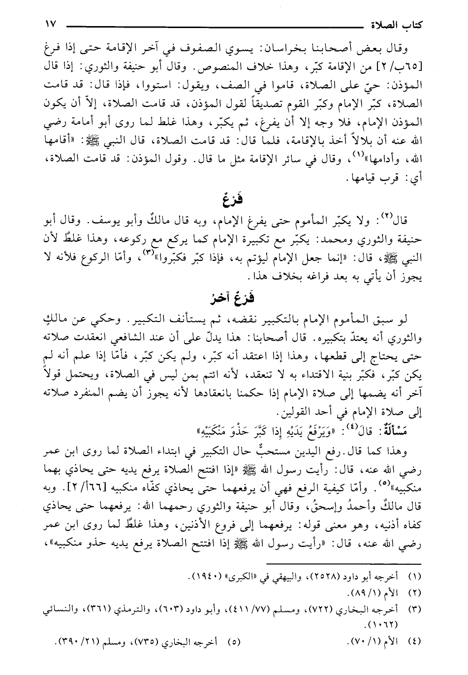 قال: ولا يكبرّ المأموم حتى يفرغ الإمام، وبه قال مالك وأبو يوسف. وقال أبو حنيفة والثوري ومحمد: يكبرّ مع تكبيرة الإمام كما يركع مع ركوعه، وهذا غلٌط لأن النبي - صلى الله عليه وسلم -، قال: (إنما جعل الإمام ليؤتم به، فإذا كبرّ فكبرّوا)، وأما الركوع فلأنه لا يجوز أن يأتي به بعد فراغه بخلاف هذا.