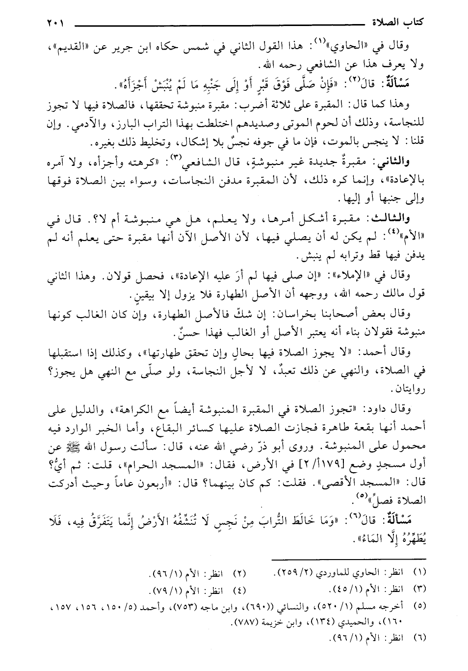 والثالث: مقبرة أشكل أمرها، ولا يعلم، هل هي منبوشة أم لا؟. قال في "الأم": لم يكن له أن يصلي فيها، لأن الأصل الآن أنها مقبرة حتى يعلم انه لم يدفن فيها قط وترابه لم ينبش.