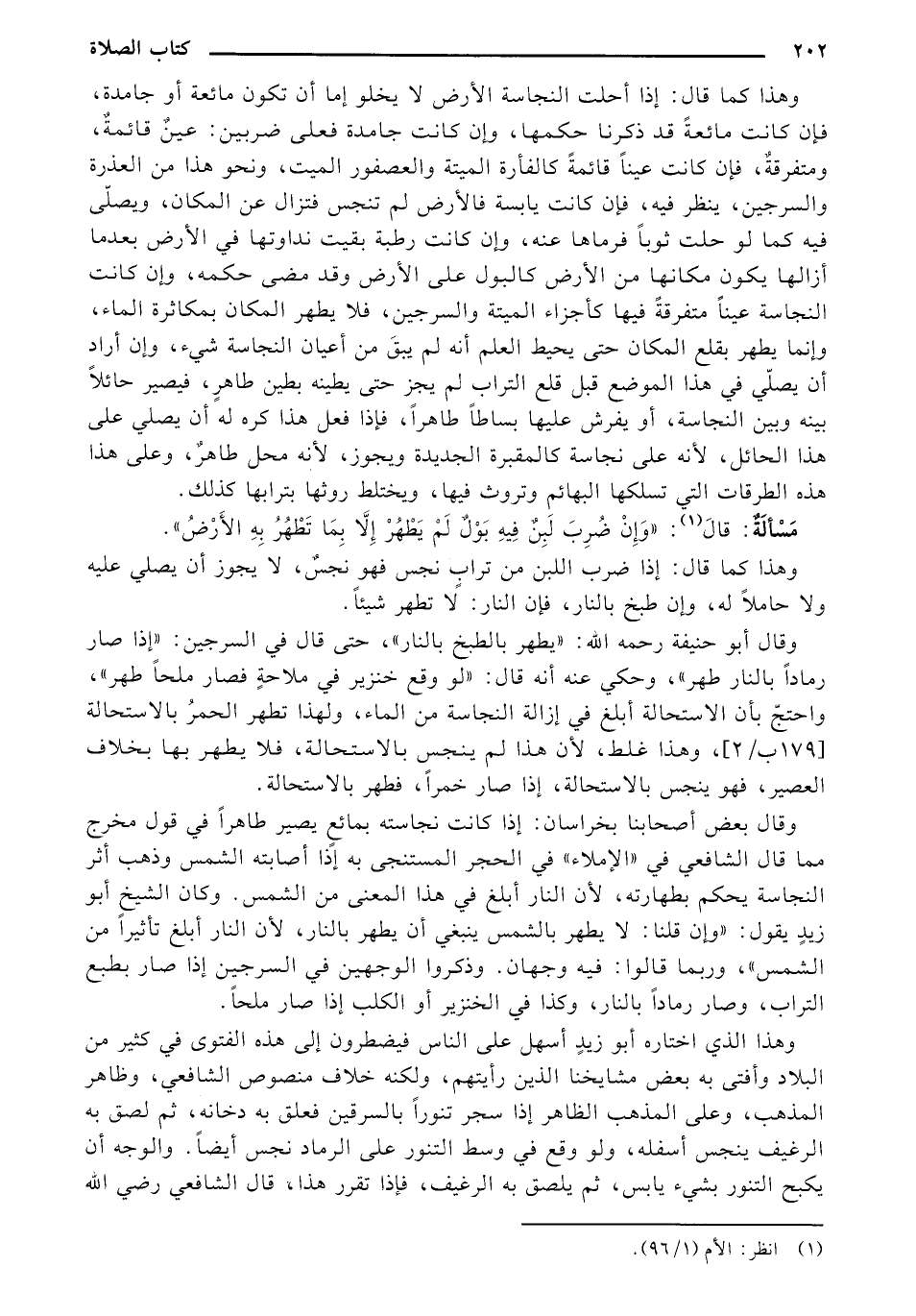 وقال بعض أصحابنا بخراسان: إذا كانت نجاسته بمائع يصير طاهراً في قول مخرج مما قال الشافعي في "الإملاء" في الحجر المستنجي به إذا أصابته الشمس وذهب أثر النجاسة يحكم بطهارته، لأن النار أبلغ في هذا المعنى من الشمس. وكان الشيخ أبو زيد يقول: "وإن قلنا: لا يطهر بالشمس ينبغي أن يطهر بالنار، لأن النار أبلغ تأثيراً من الشمس"، وربما قالوا: فيه وجهان. وذكروا الوجهين في السرجين إذا صار بطبع التراب، وصار رماداً بالنار، وكذا في الخنزير أو الكلب إذا صار ملحاً.