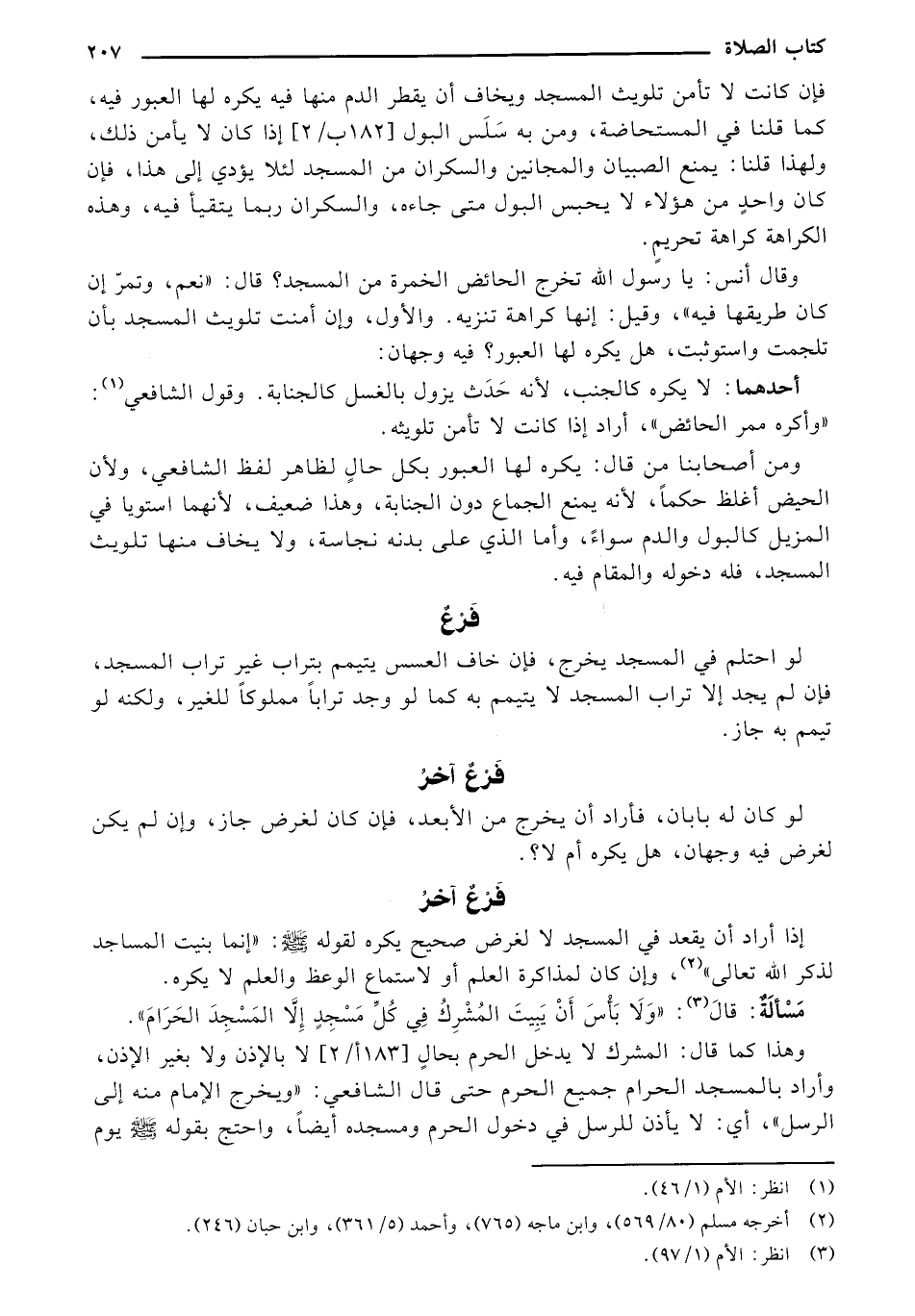 وقال أنس: يا رسول انه تخرج الحائض الخمرة من المسجد؟ قال: "نعم، وتمر إن كان طريقها فيه"، وقيل: إنها كراهة تنزيه. والأول، وان أمنت تلويث المسجد بأن تلجمت واستوثبت، هل يكره لها العبور؟ فيه وجهان: