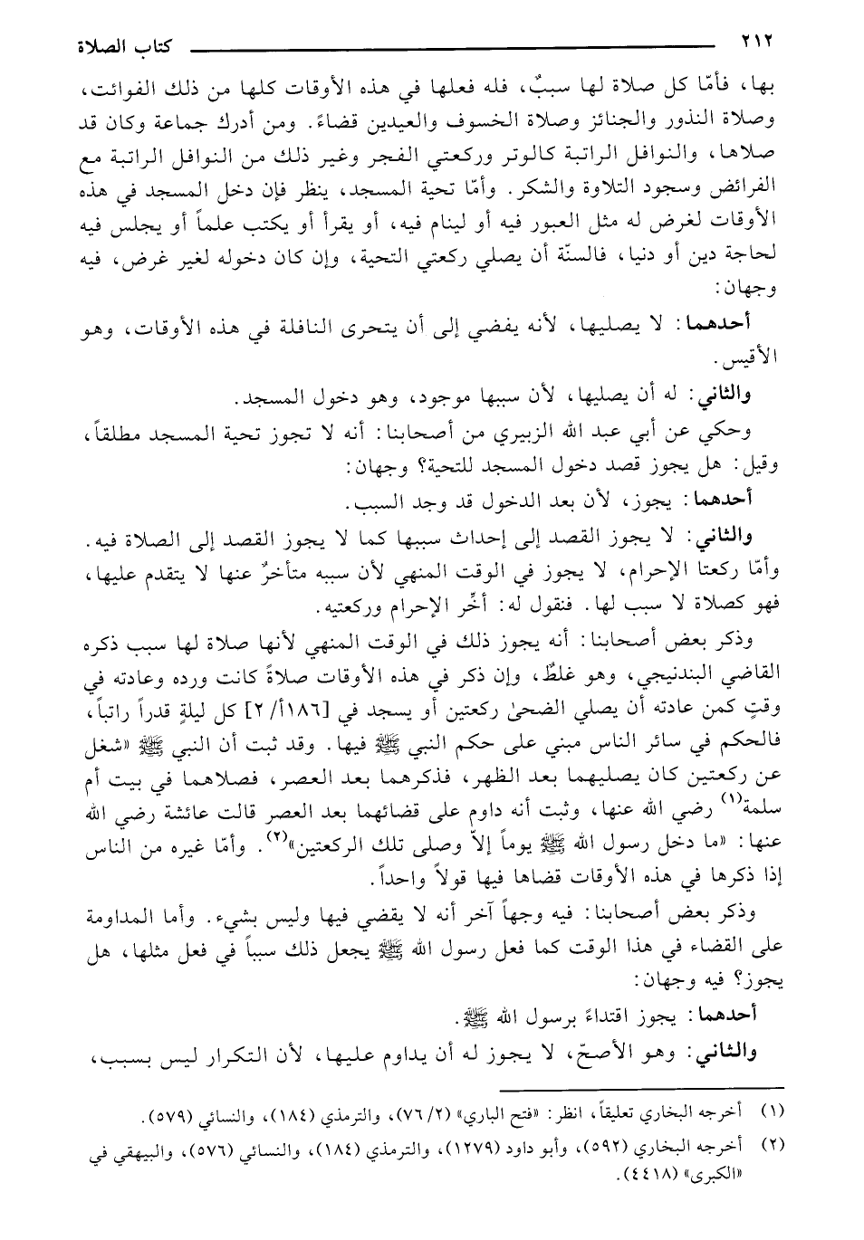 والثاني: لا يجوز القصد إلى إحداث سببها كما لا يجوز القصد إلى الصلاة فيه. وأما ركعتا الإحرام، لا يجوز في الوقت المنهي لأن سببه متأخر عنها لا يتقدم عليها، فهو كصلاة لا سبب لها. فنقول له: أخر الإحرام وركعتيه.
