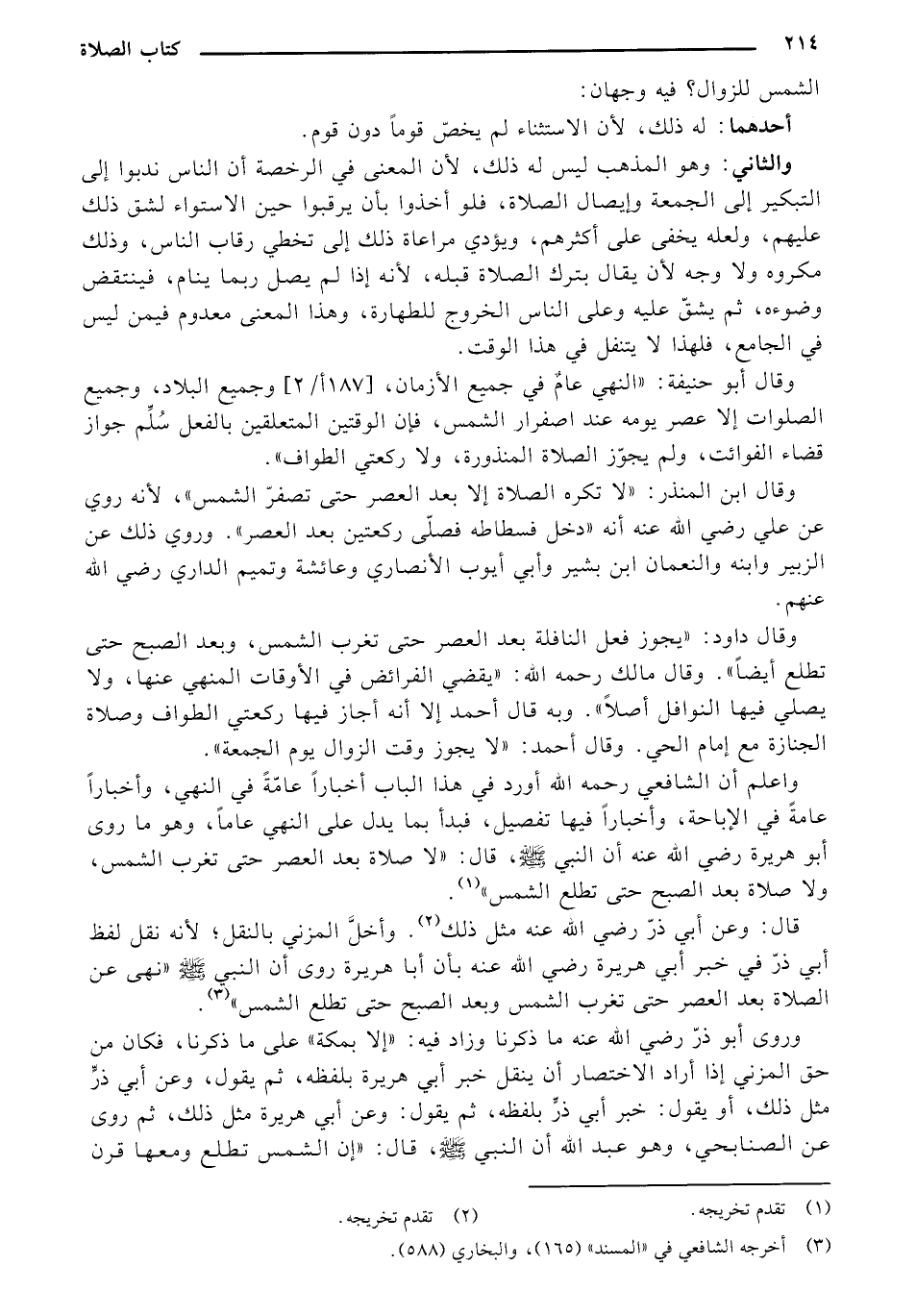 قال: وعن أبي ذر رضي الله عنه مثل ذلك. وأخل المزني بالنقل؟ لأنه نقل لفظ أبي ذر في خبر أبي هريرة رضي الله عنه بأن أبا هريرة روى أن النبي - صلى الله عليه وسلم - "نهى عن الصلاة بعد العصر حتى تغرب الشمس وبعد الصبح حتى تطلع الشمس".