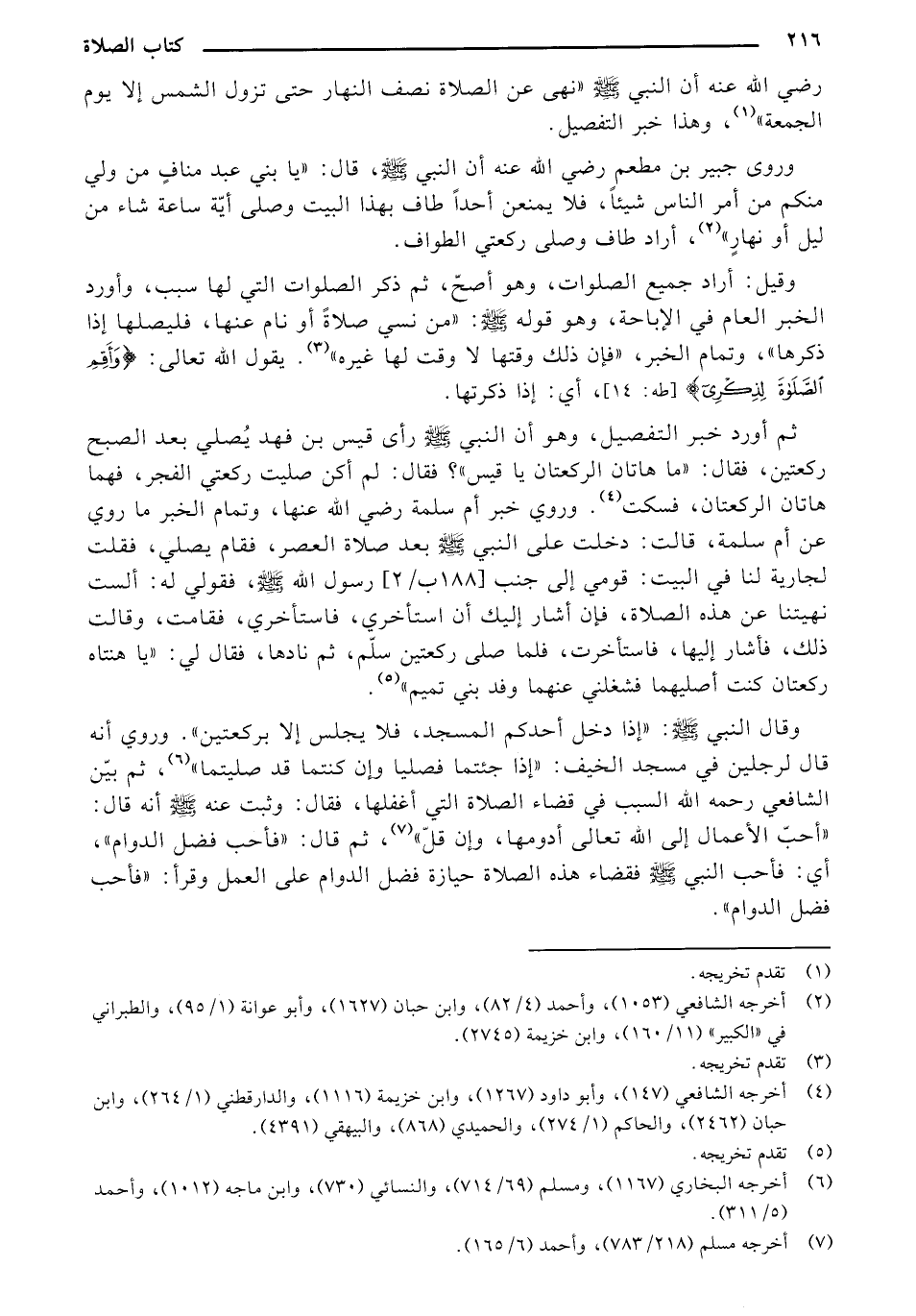 وروى جبير بن مطعم رضي الله عنه أن النبي - صلى الله عليه وسلم -، قال: "يا بني عبد مناف من ولي منكم من أمر الناس شيئاً، فلا يمنعن أحداً طاف بهذا البيت وصلى أية ساعة شاء من ليل أو نهار"، أراد طاف وصلى ركعتي الطواف.