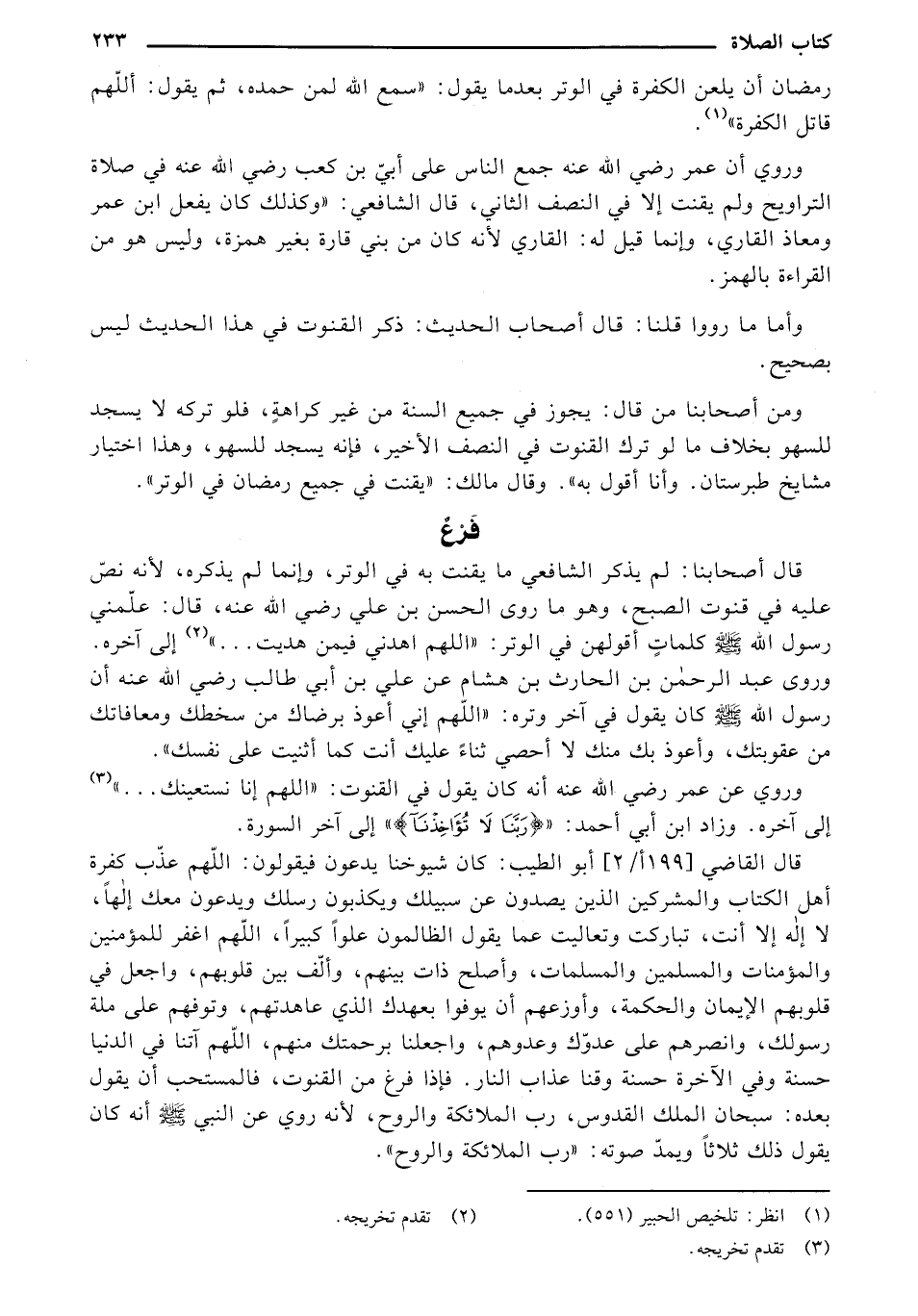 وروي عن عمر رضي الله عنه أنه كان يقول في القنوت: "اللهم إنا نستعينك. . ." إلى آخره. وزاد ابن أبي أحمد: {رَبَّنَا لا تُؤَاخِذْنَا} " إلى آخر السورة.