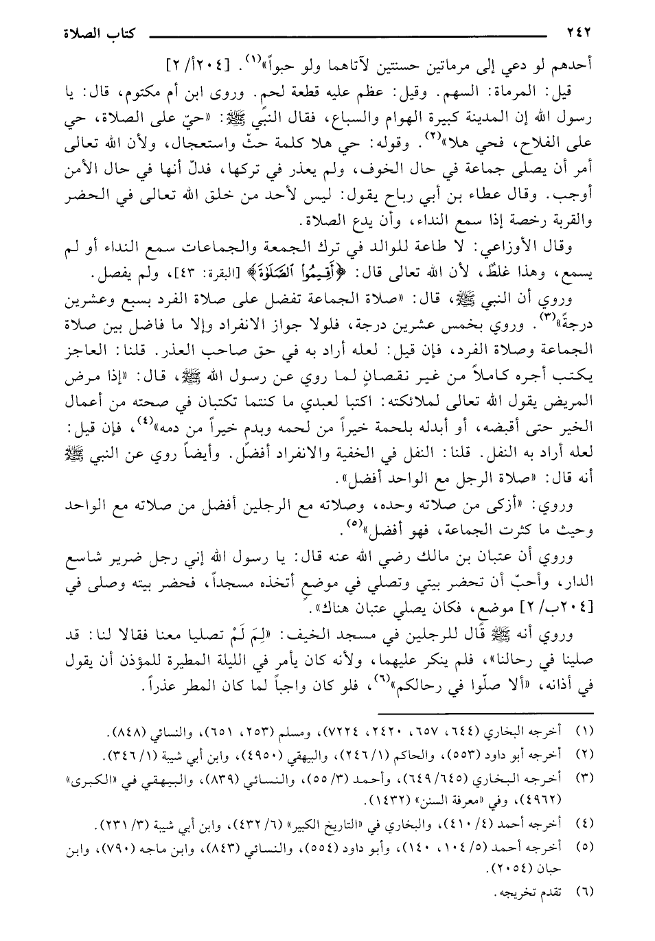 أحدهم لو دعي إلى مرماتين حسنتين لآتاهما ولو حبواً". [204 أ / 2]