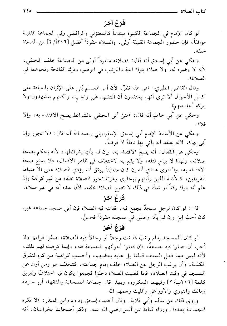 لا كان الإمام في الجماعة الكبيرة مبتدعاً كالمعتزلي والرافضي وفي الجماعة القليلة موافقاً، فإن حضور الجماعة القليلة أولى، والصلاة منفرداً أفضل [206 أ / 2] من الصلاة خلفه.