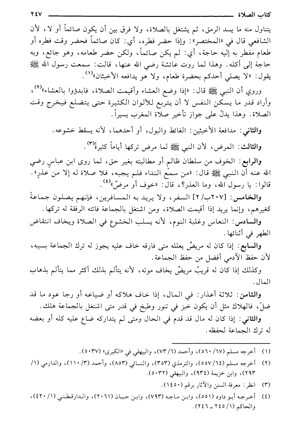 والرابع: الخوف من سلطان ظالم أو مطالبته بغير حق، لما روى ابن عباس رضي الله عنه أن النبي - صلى الله عليه وسلم - قال: "من سمع النداء فلم يجبه، فلا صلاة له إلا من عذر". قالوا: يا رسول الله، وما العذر؟، قال: "خوف أو مرض".
