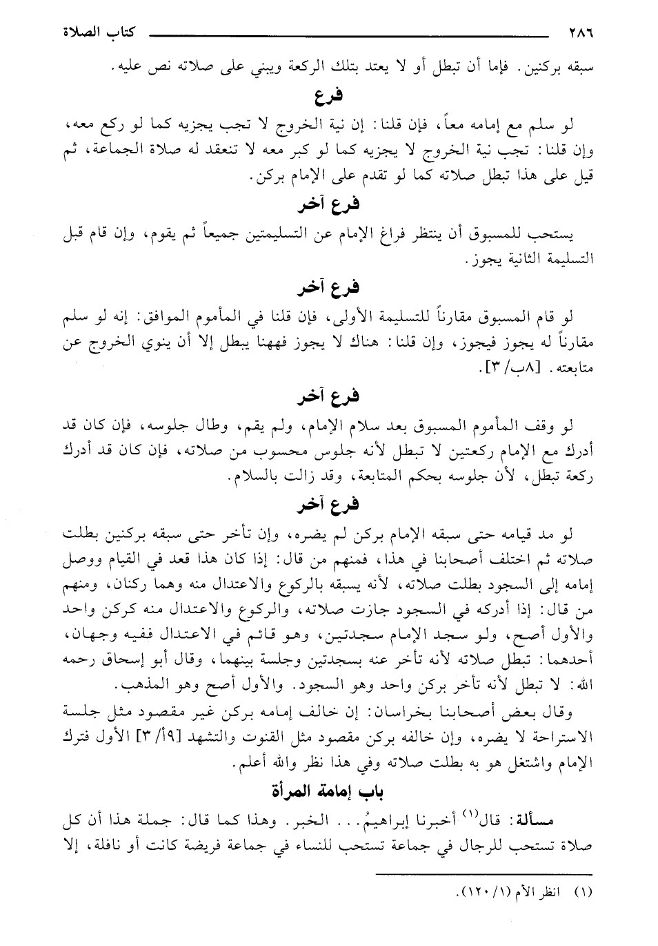 وقال بعض أصحابنا بخراسان: إن خالف إمامه بركن غير مقصود مثل جلسة الاستراحة لا يضره، وإن خالفه بركن مقصود مثل القنوت والتشهد [9 أ/3] الأول فترك الإمام واشتغل هو به بطلت صلاته وفي هذا نظر والله أعلم.