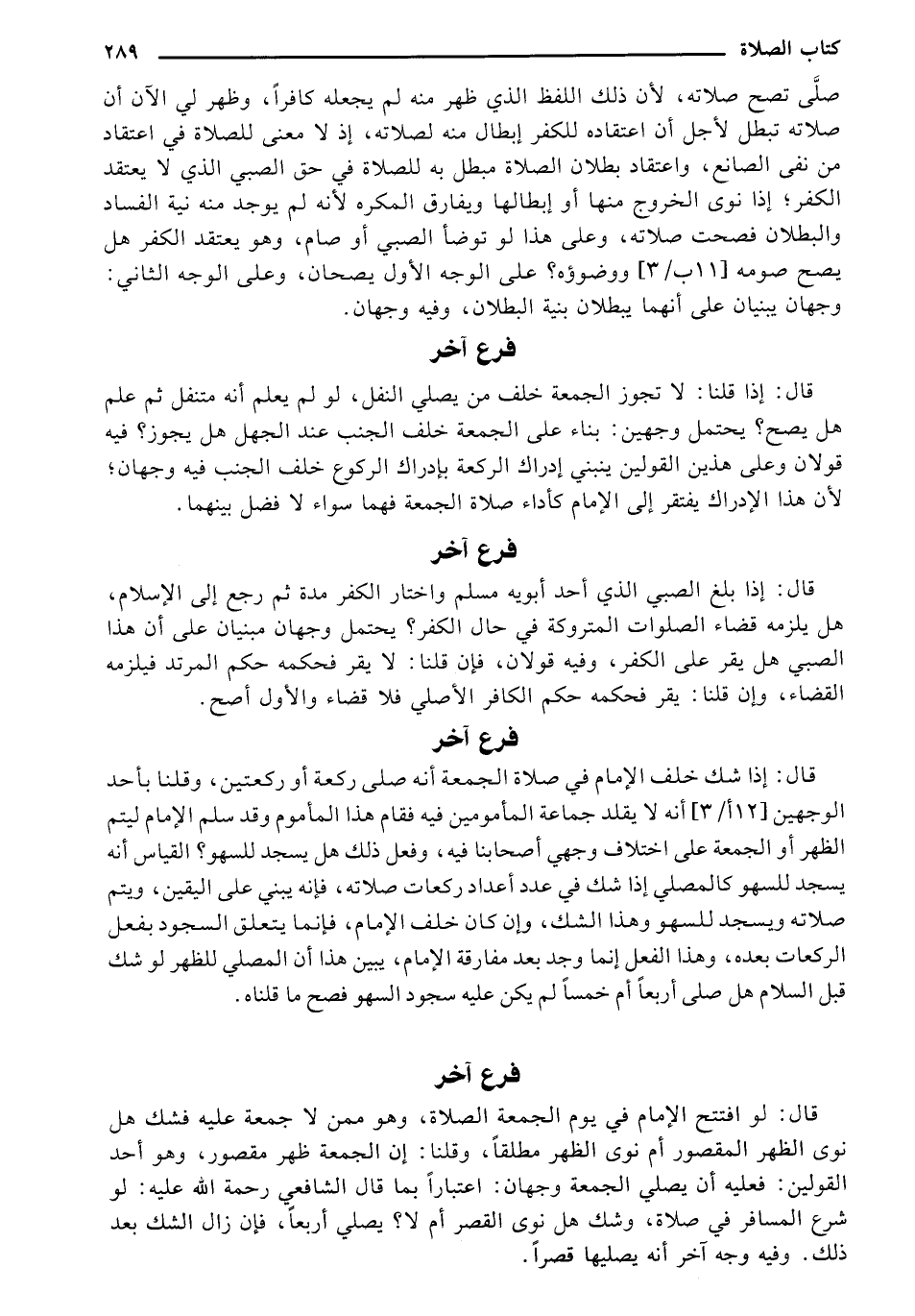 صلى تصح صلاته، لأن ذلك اللفظ الذي ظهر منه لم يجعله كافراً، وظهر لي الآن أن صلاته تبطل لأجل أن اعتقاده للكفر إبطال منه لصلاته، إذ لا معنى للصلاة في اعتقاد من نفى الصانع، واعتقاد بطلان الصلاة مبطل به للصلاة في حق الصبي الذي لا يعتقد الكفر؛ إذا نوى الخروج منها أو إبطالها ويفارق المكره لأنه لم يوجد منه نية الفساد والبطلان فصحت صلاته، وعلى هذا لو توضأ الصبي أو صام، وهو يعتقه الكفر هل يصح صومه [11 ب/3] ووضوؤه؟ على الوجه الأول يصحان، وعلى الوجه الثاني: وجهان يبنيان على أنهما يبطلان بنية البطلان، وفيه وجهان.
