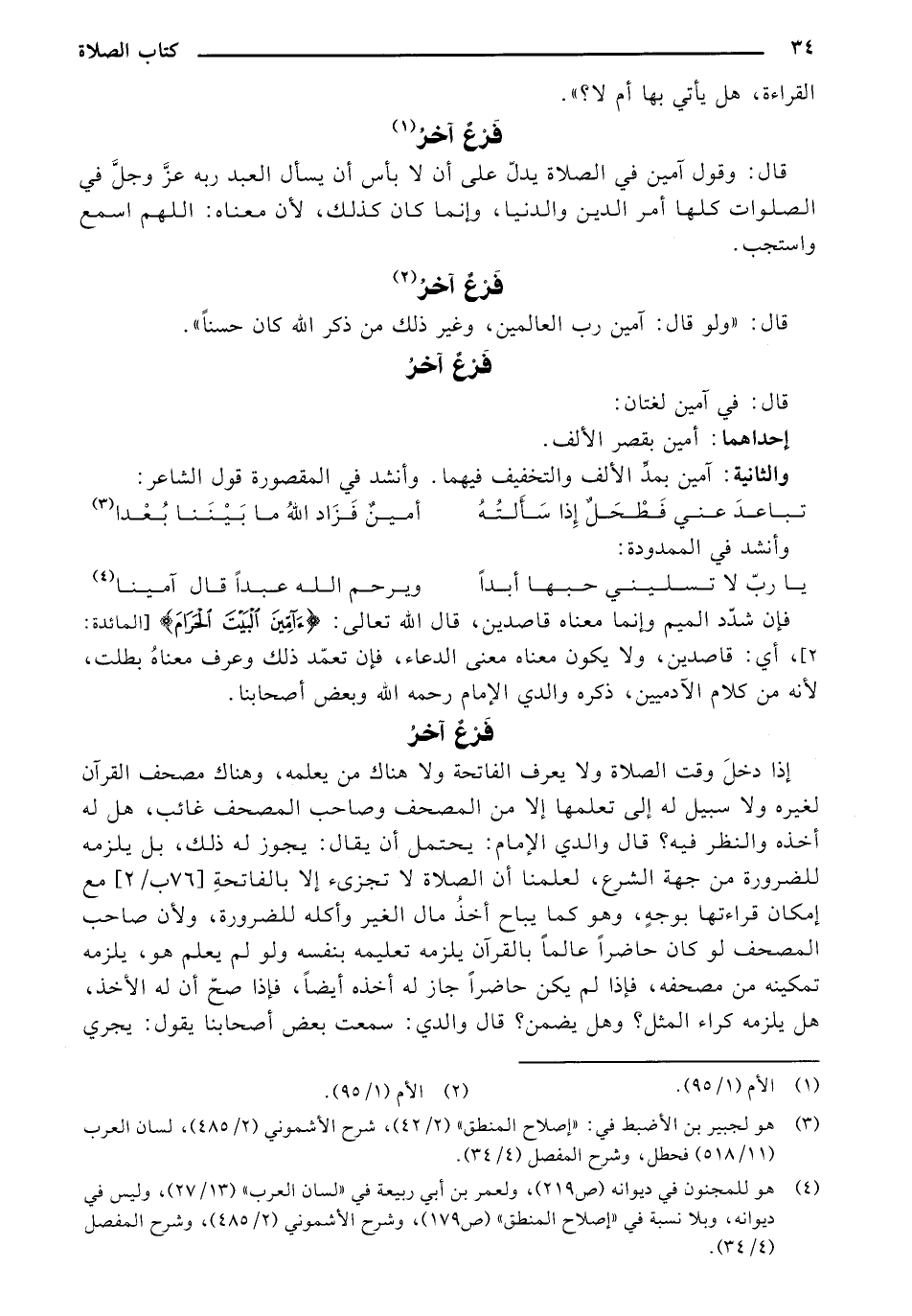 قال: وقول آمين في الصلاةَ يدّل على أن لا بأس أن يسأل العبد ربه عزّ وجلّ في الصلوات كلها أمر الدين والدنيا، وإنما كان كذلك، لأن معناهُ: اللهم اسمع واستجب.
