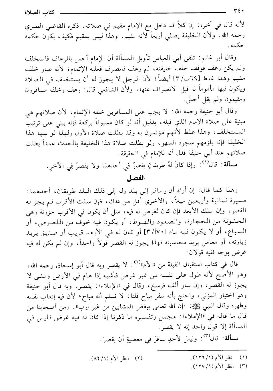 وقال أبو حنيفة رحمه الله: لا يجب على المسافرين خلفه الإتمام، لأن صلاتهم هي مبنية على صلاة الإمام الذي قبله، بدليل أنه لو كان مسبوقاً بركعة فإنه يبني على ترتيب المستخلف، وهذا غلط لأنهم مؤتمون به وقد بطلت صلاة الأول ولهذا لو سها هذا الخليفة فإنه يلزمهم سجود السهو، ولو بطلت صلاة هذا الخليفة بالحدث عمداً بطلت صلاتهم عند أبي حنيفة فدل أنه للإمام في الحقيقة.