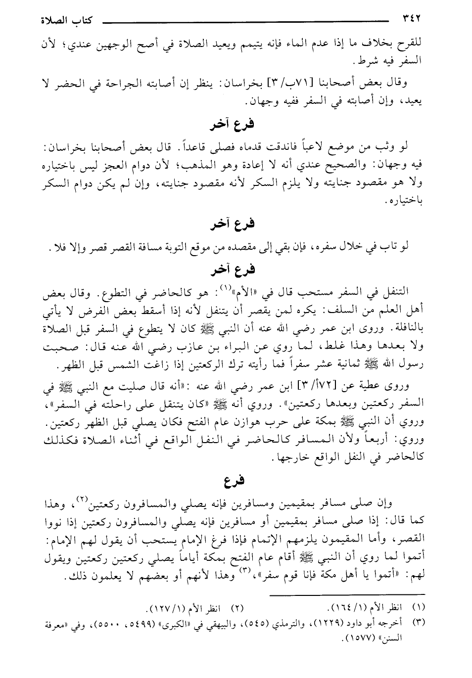 التنفل في السفر مستحب قال في "الأم": هو كالحاضر في التطوع. وقال بعض أهل العلم من السلف: يكره لمن يقصر أن يتنفل لأنه إذا أسقط بعض الفرض لا يأتي بالنافلة. وروى ابن عمر رضي الله عنه أن النبي - صلى الله عليه وسلم - كان لا يتطوع في السفر قبل الصلاة ولا بعدها وهذا غلط، لما روي عن البراء بن عازب رضي الله عنه قال: صحبت رسول الله - صلى الله عليه وسلم - ثمانية عشر سفراً فما رأيته ترك الركعتين إذا زاغت الشمس قبل الظهر.