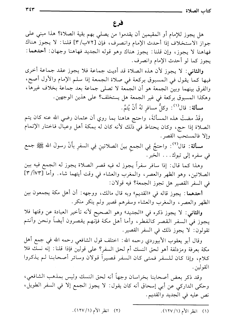 وهذا كما قال: إذا سافر سفراً يجوز له فيه قصر الصلاة يجوز له الجمع فيه بين الصلاتين، وهو الظهر والعصر، والمغرب والعشاء في وقت أيتهما شاء. وأما [73 أ / 3] في السفر القصير هل تجوز الجمعة؟ فيه قولان:
