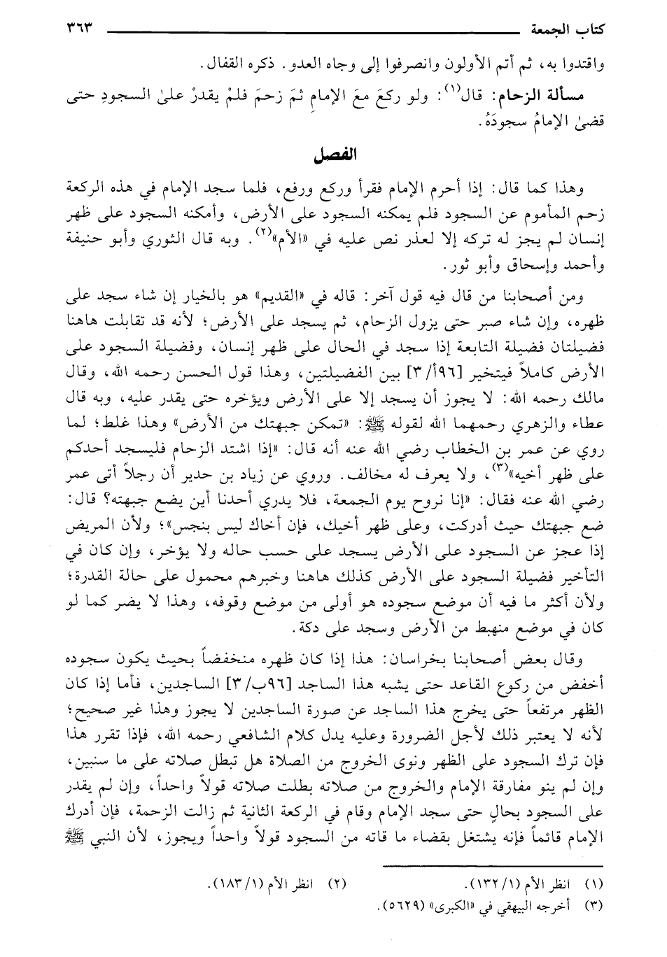 وهذا كما قال: إذا أحرم الإمام فقرأ وركع ورفع، فلما سجد الإمام في هذه الركعة زحم المأموم عن السجود فلم يمكنه السجود على الأرض، وأمكنه السجود على ظهر إنسان لم يجز له تركه إلا لعذر نص عليه في "الأم". وبه قال الثوري وأبو حنيفة وأحمد وإسحاق وأبو ثور.