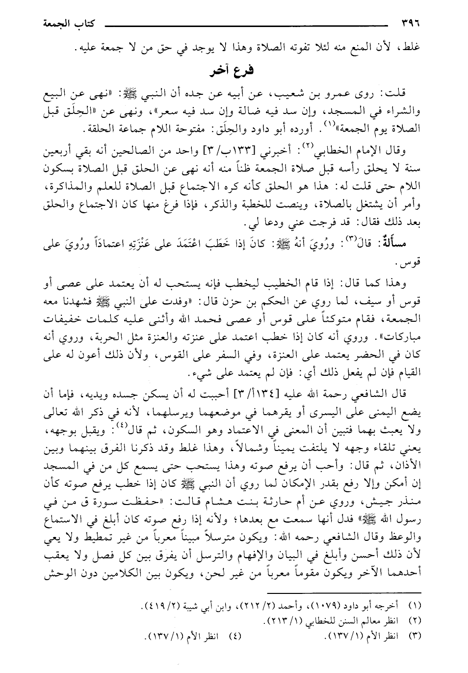قلت: روى عمرو بن شعيب، عن أبيه عن جده أن النبي - صلى الله عليه وسلم -: "نهى عن البيع والشراء في المسجد، وإن سد فيه ضالة وإن سد فيه سعر"، ونهى عن "الحلق قبل الصلاة يوم الجمعة ". أورده أبو داود والحلق: مفتوحة اللام جماعة الحلقة.