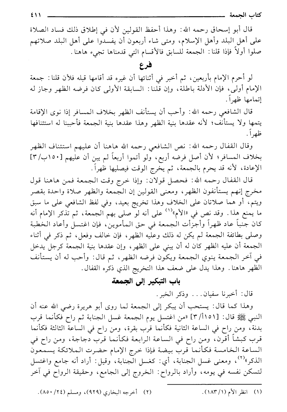 وهذا كما قال: يستحب أن يبكر إلى الجمعة لما روى أبو هريرة رضي الله عنه أن النبي - صلى الله عليه وسلم - قال: [151 أ/ 3] "من اغتسل يوم الجمعة غسل الجنابة ثم راح فكأنما قرب بدنة، ومن راح في الساعة الثانية فكأنما قرب بقرة، ومن راح في الساعة الثالثة فكأنما قرب كبشاً أقرن، ومن راح في الساعة الرابعة فكأنما قرب دجاجة، ومن راح في الساعة الخامسة فكأنما قرب بيضة فإذا خرج الإمام حضرت الملائكة يسمعون الذكر"، ومعنى غسل الجنابة، أي: كغسل الجنابة، وقيل: أراد أنه جامع واغتسل لتسكن نفسه في يومه، وأراد بالرواح: الخروج إلى الجامع، وحقيقة الرواح في آخر