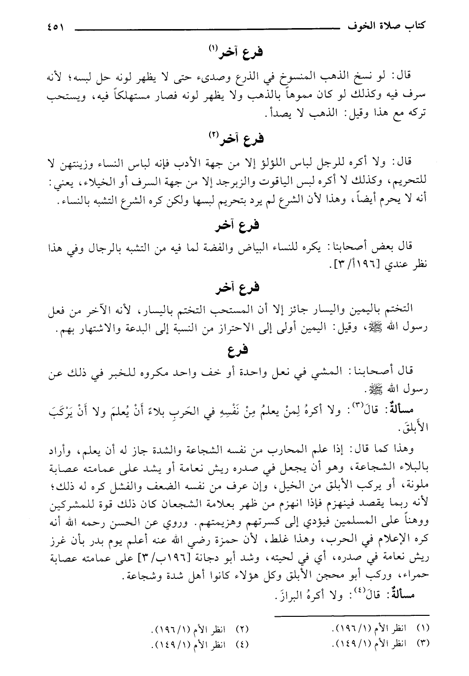 قال بعض أصحابنا: يكره للنساء البياض والفضة لما فيه من التشبه بالرجال وفي هذا نظر عندي "196 أ/3".