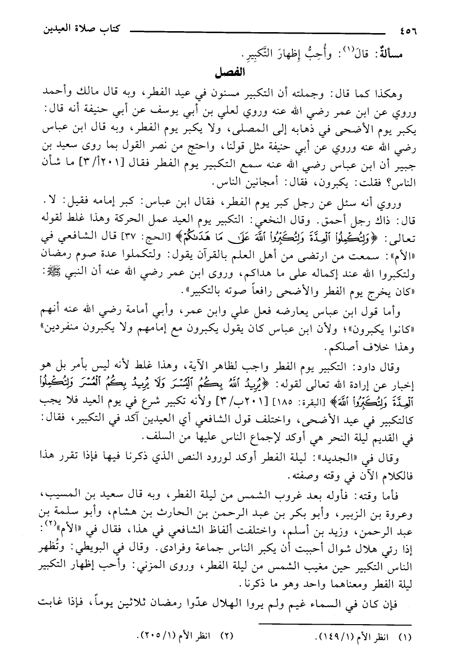 وروي أنه سئل عن رجل كبر يوم الفطر، فقال ابن عباس: كبر إمامه فقيل: لا قال: ذاك رجل أجمق. وقال النخعي: التكبير يوم العيد عمل الحركة وهذا غلط لقوله تعالى: {ولِتُكْمِلُوا العِدَّةَ ولِتُكبرّوا اللَّهَ عَلَى مَا هَدَاكُمْ} "الحج: 37" قال الشافعي في " الأم": سمعت من ارتضى من أهل العلم بالقرآن يقول: ولتكملوا عدة صوم رمضان ولتكبروا الله عند إكماله على ما هداكم، وروى ابن عمر رضي الله عنه أن النبي - صلى الله عليه وسلم -: " كان يخرج يوم الفطر والأضحى رافعا صوته بالتكبير".