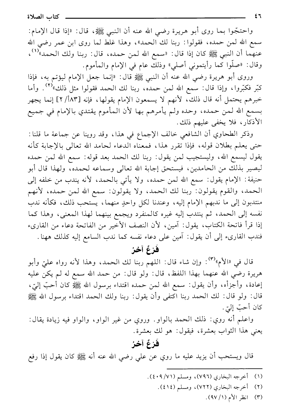 واحتجوا بما روى أبو هريرة رضي الله عنهأن النبي - صلى الله عليه وسلم -، قال: (إذا قال الإمام: سمع الله لمن حمده، فقولوا: ربنا لك الحمد)، وهذا غلط لما روى ابن عمر رضي الله عنهأن النبي - صلى الله عليه وسلم - كان إذا قال: (سمع الله لمن حمده، قال: ربنا ولك الحمد)، وقال: (صّلوا كما رأيتموني أصلي) وذلك عام في الإمام والمأموم.
