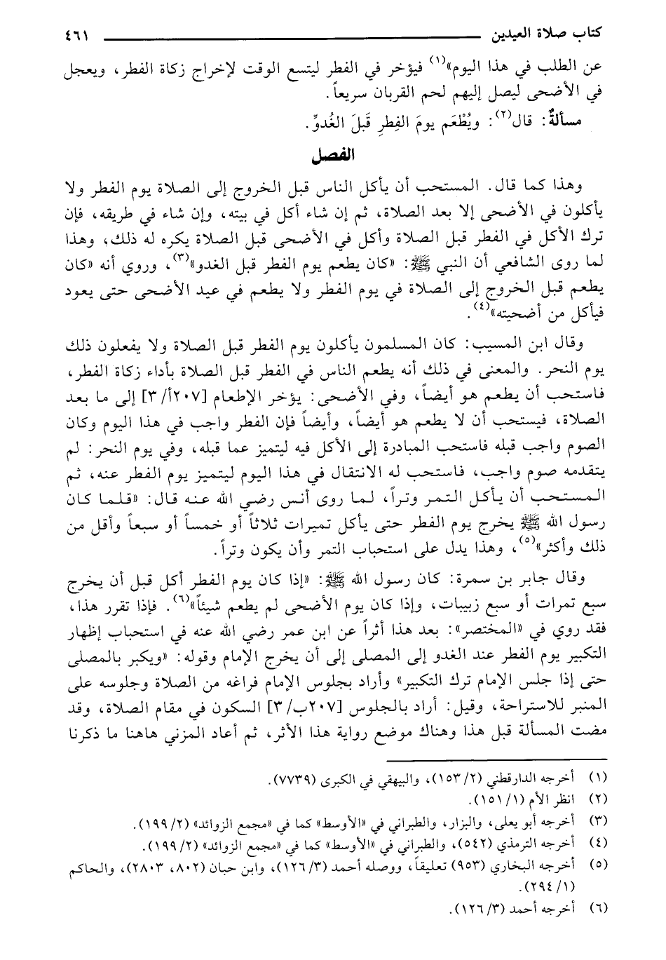 وقال ابن المسيب: كان المسلمون يأكلون يوم الفطر قبل الصلاة ولا يفعلون ذلك يوم النحر، والمعنى في ذلك أنه يطعم الناس في الفطر قبل الصلاة بأداء زكاة الفطر، فاستحب أن يطعم هو أيضا، وفي الأضحى: يؤخر الإطعام "207 أ/3" إلى ما بعد الصلاة، فيستحب أن لا يطعم هو أيضا، وأيضا فإن الفطر واجب في هذا اليوم وكان الصوم واجب قبلهفاستحب المبادرة إلى الأكل فيه ليتميز عما قبله، وفي يوم النحر: لم يتقدمه صوم واجب، فاستحب له الانتقال في هذا اليوم ليتميز يوم الفطر عنه، ثم المستحب أن يأكل التمر وترا، لما روي أنس رضي الله عنه قال: "قلما كان رسول الله - صلى الله عليه وسلم - يخرج يوم الفطر حتى يأكل تميرات ثلاثا أو خمسا أو سبعا وأقل من ذلك وأكثر"، وهذا يدل على استحباب التمر وأن يكون وترا.