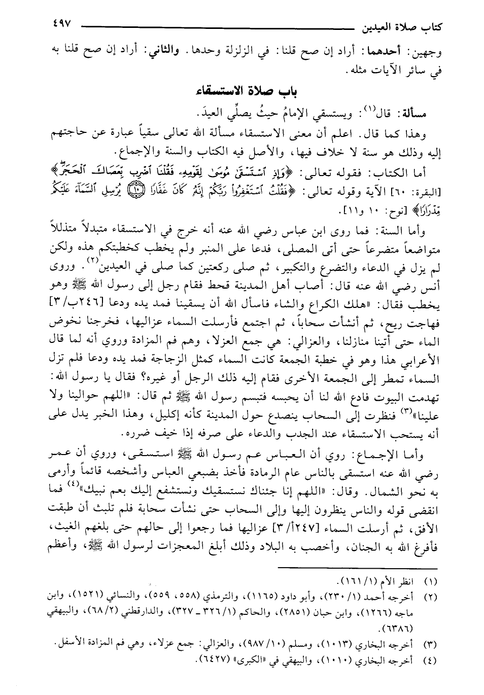 أما الكتاب: فقوله تعالى: {وإذِ اسْتَسْقَى مُوسَى لِقَوْمِهِ فَقُلْنَا اضْرِب بِّعَصَاكَ الحَجَرَ} "البقرة: 60" الآية وقوله تعالى: {فَقُلْتُ اسْتَغْفِرُوا رَبَّكُمْ إنَّهُ كَانَ غَفَّارًا (10) يُرْسِلِ السَّمَاءَ عَلَيْكُم مِّدْرَارًا} "نوح: 10 و 11".